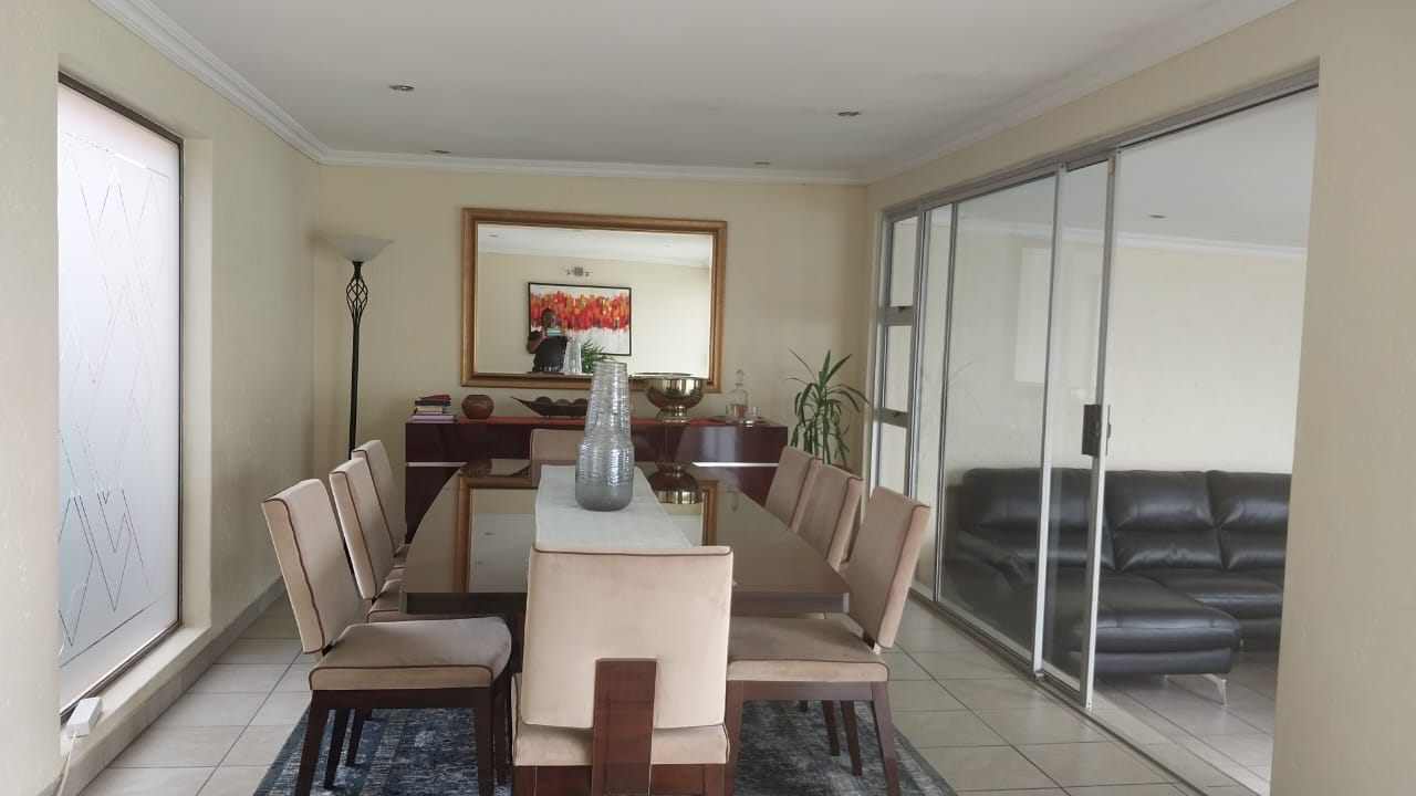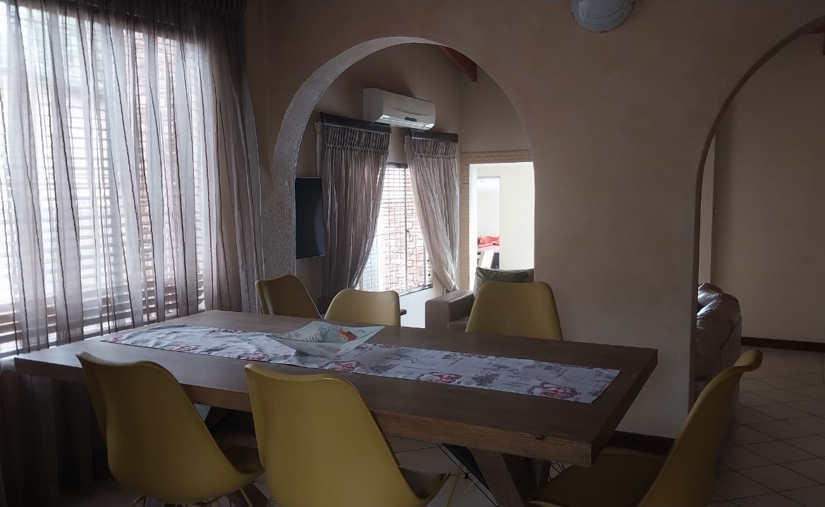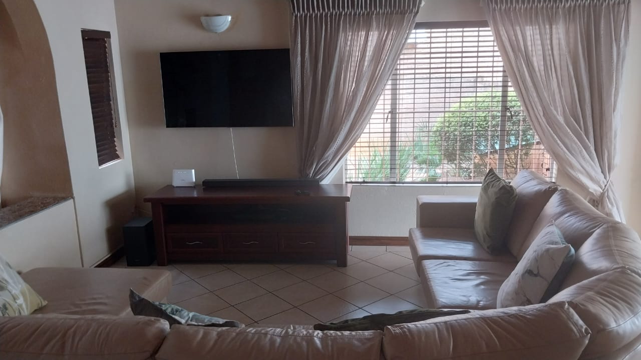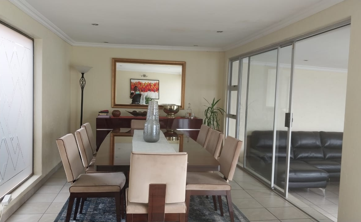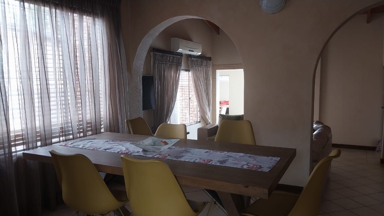A modern kitchen with granite tops and scullery, creating a welcoming atmosphere. 2 furnished lounges for relaxation and entertainment. It has a dinning room capable of accommodating an 8 seater table. There is a second toilet for convenience. There is 3 bedrooms, main with en-suit and all with BIC. There’s a cottage with a kitchenette and a shower for additional space.