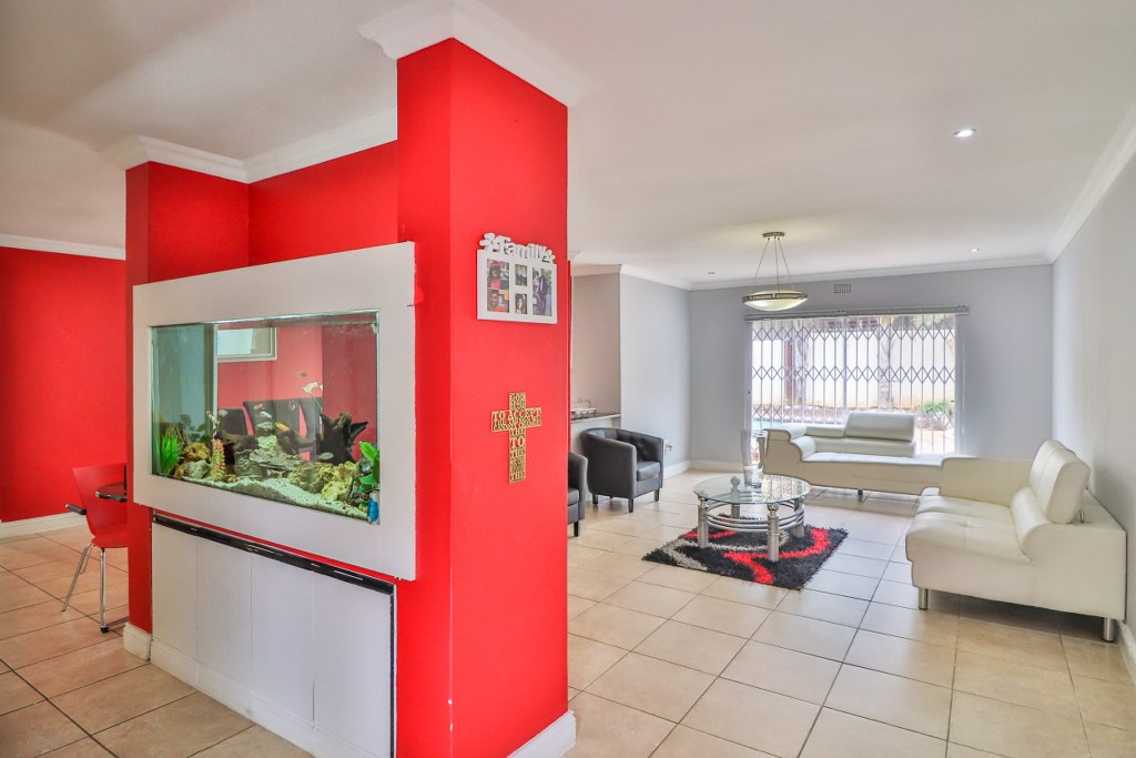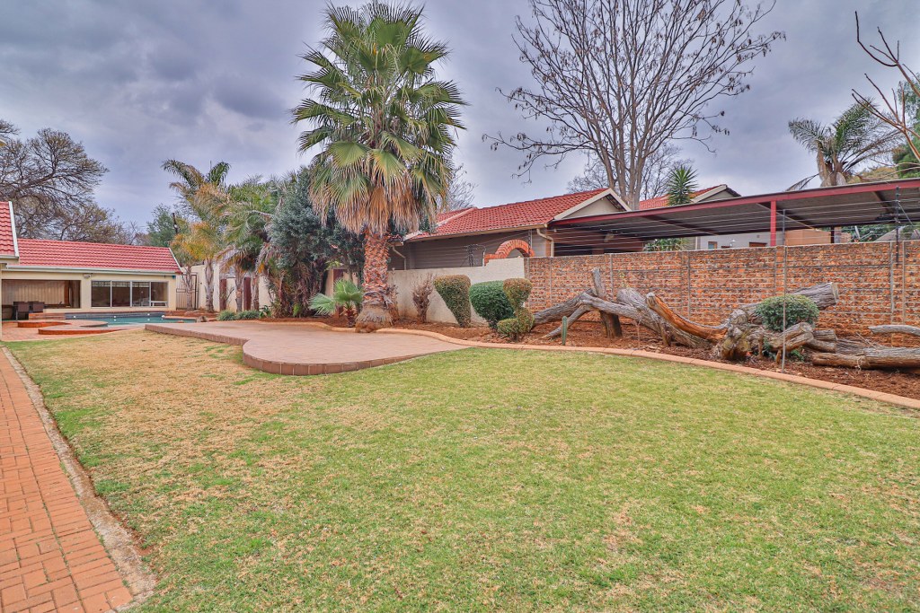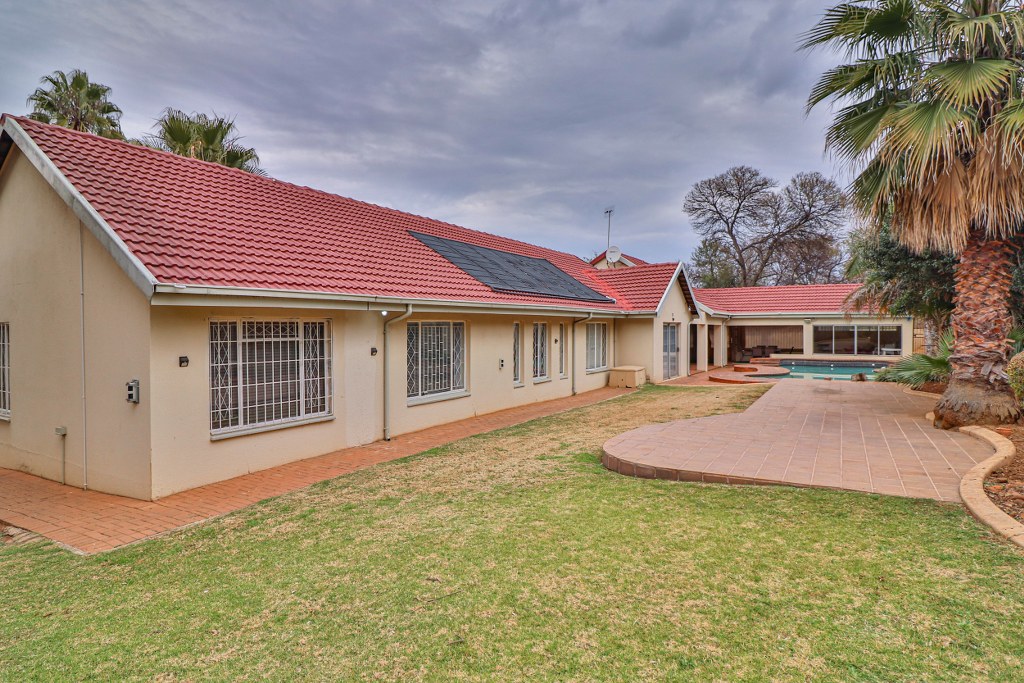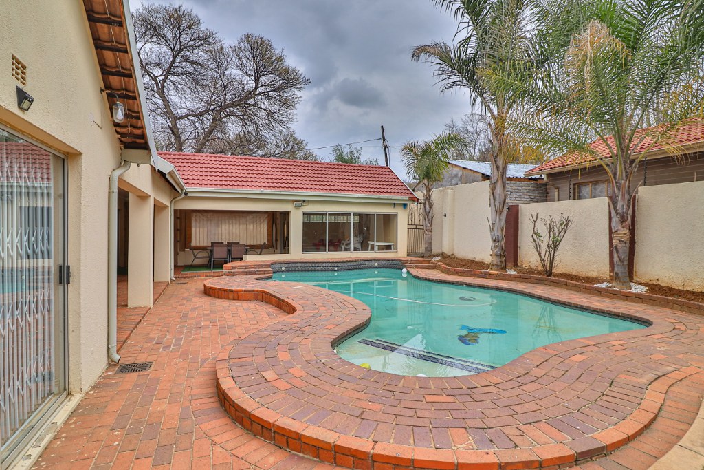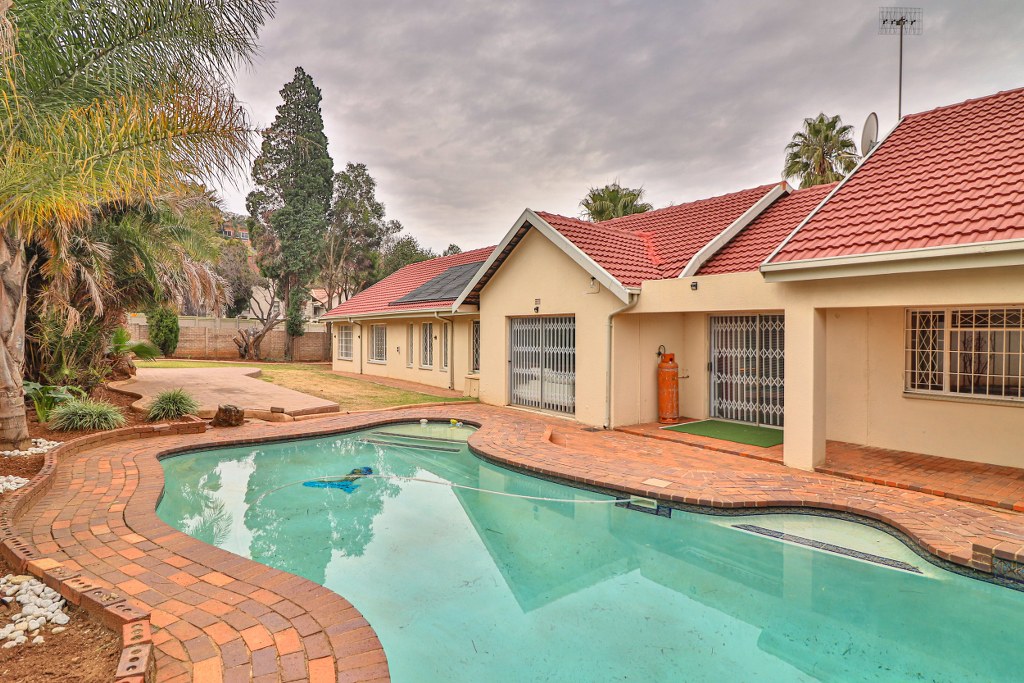 This spacious home offers tiled entrance, open plan lounge with gas fireplace, dining room, designer kitchen with scullery and pantry. Entertainment room with jacuzzi. 4 bedrooms with BIC’s, 2 bathrooms (mes), guest bathroom, sparkling pool, staff accommodation, double garage and a large carport.