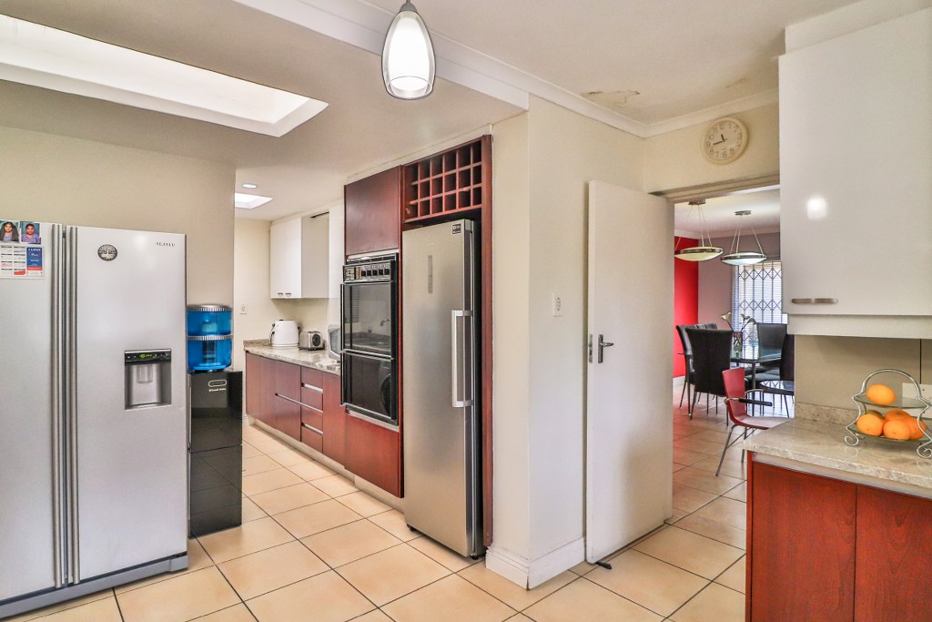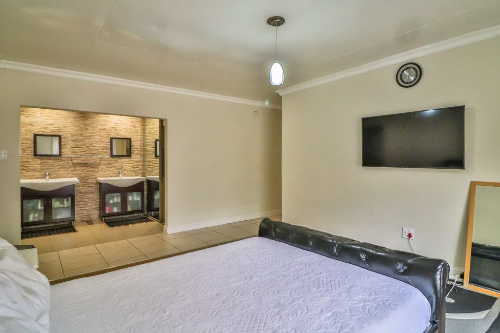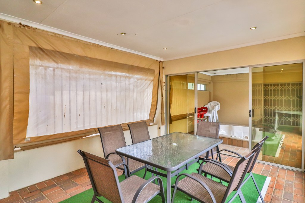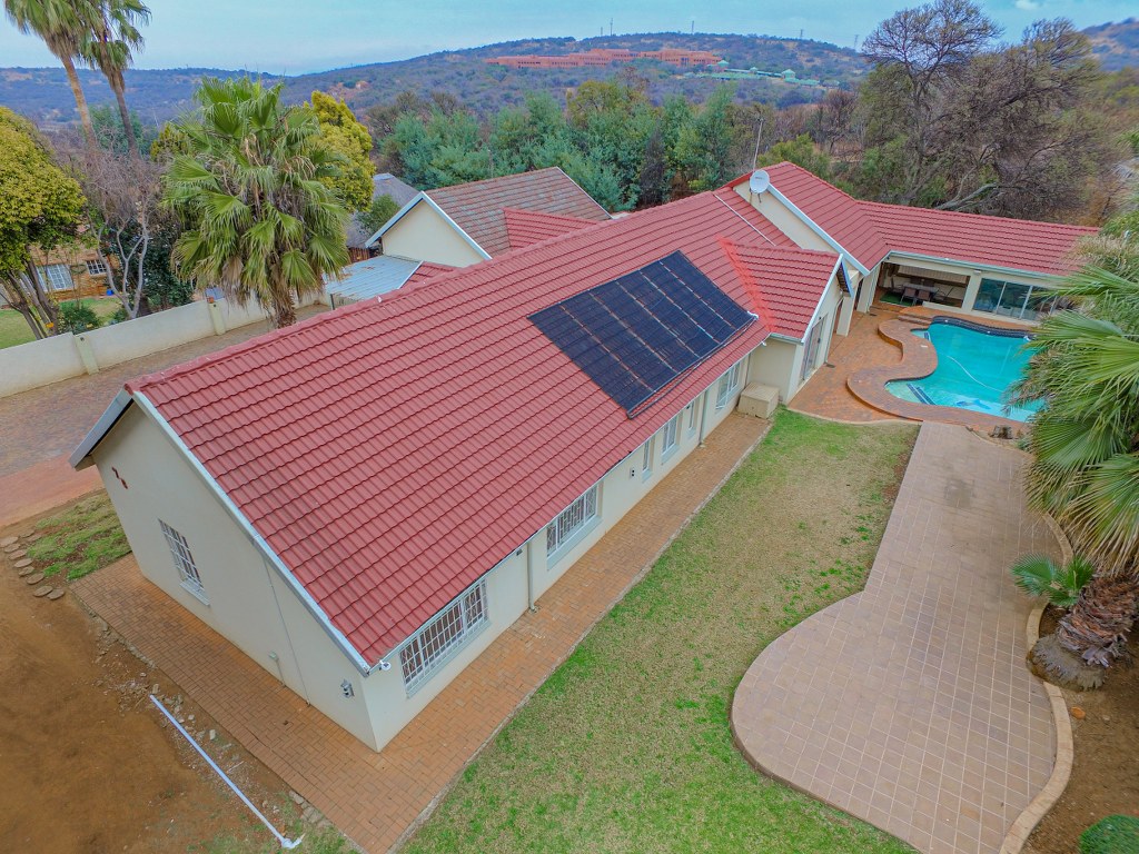This spacious home offers tiled entrance, open plan lounge with gas fireplace, dining room, designer kitchen with scullery and pantry. Entertainment room with jacuzzi. 4 bedrooms with BIC’s, 2 bathrooms (mes), guest bathroom, sparkling pool, staff accommodation, double garage and a large carport.