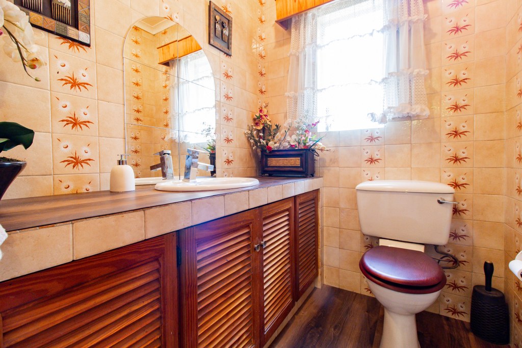 The main residence downstairs offers three comfortably sized bedrooms, adorned with new laminate flooring, and two well-appointed bathrooms, including a main-en-suite for added convenience.