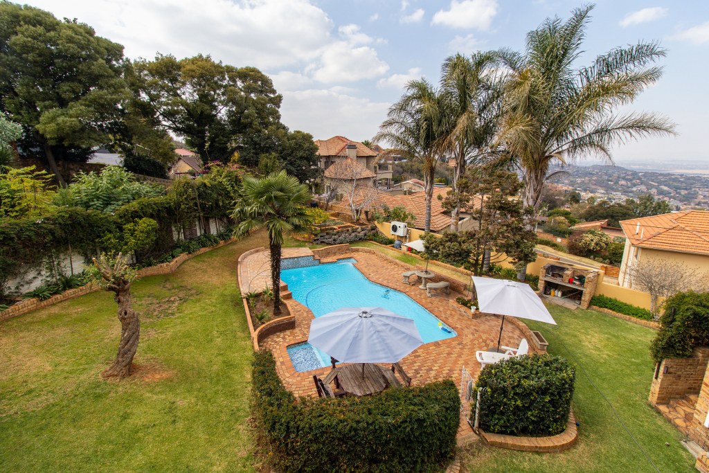 Upon entering, you are greeted by a cozy lounge that flows seamlessly into a spacious TV room, boasting panoramic vistas that stretch across Glenvista and beyond. Adjacent is a delightful bar area, perfect for relaxing evenings with friends and family. The dining room connects effortlessly to the expansive kitchen, providing ample room for culinary endeavors and gatherings.