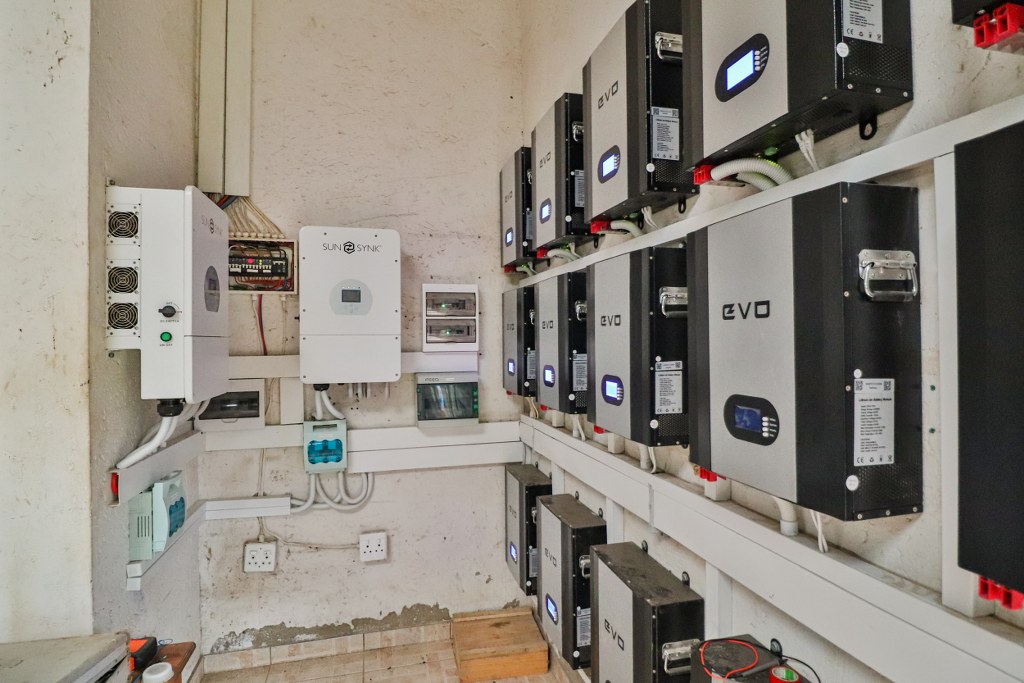The property offers Solar panels and invertors, 80% off the Grid.