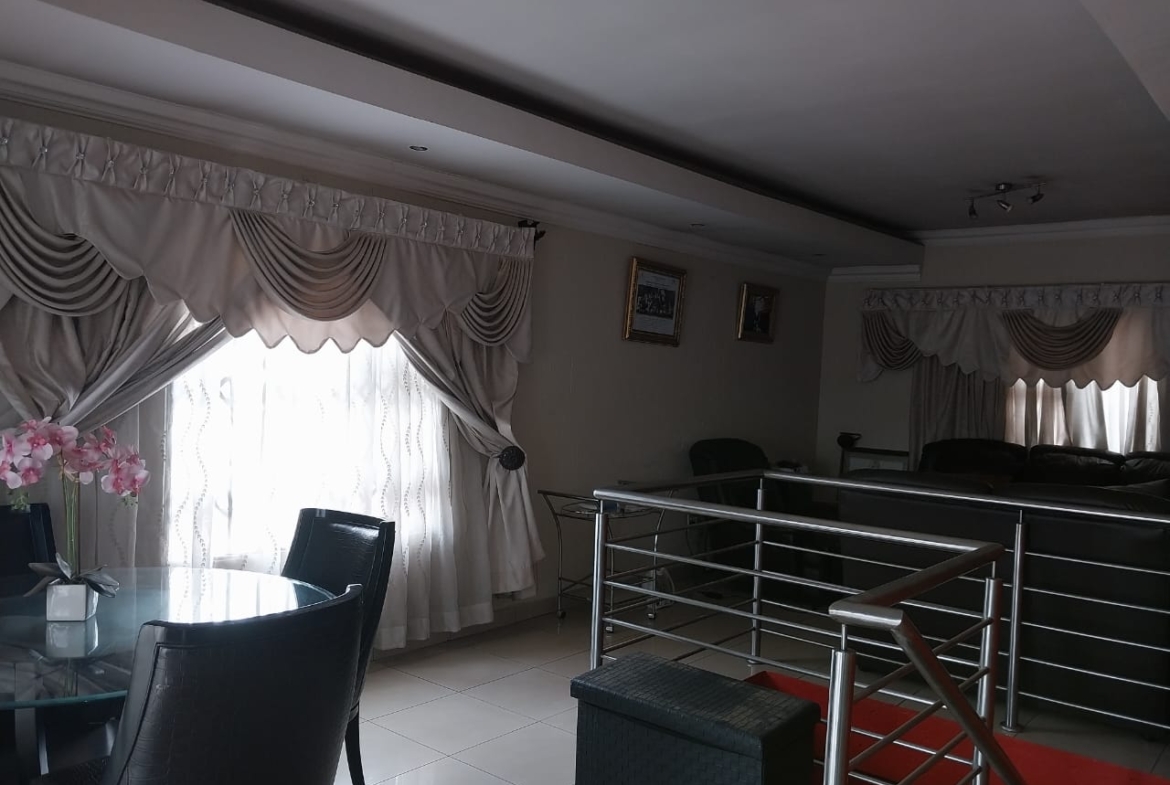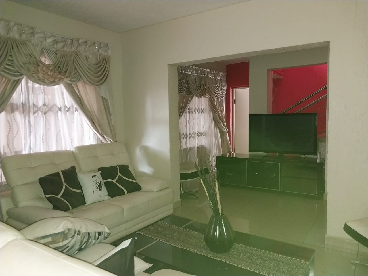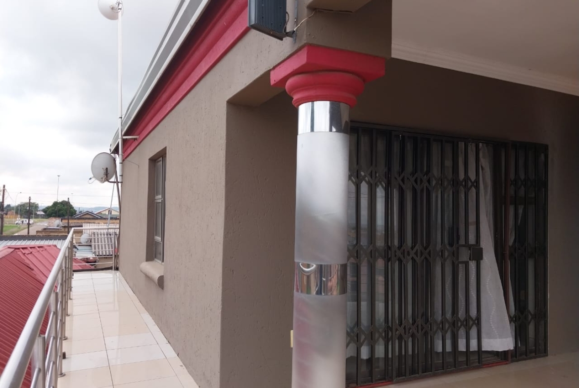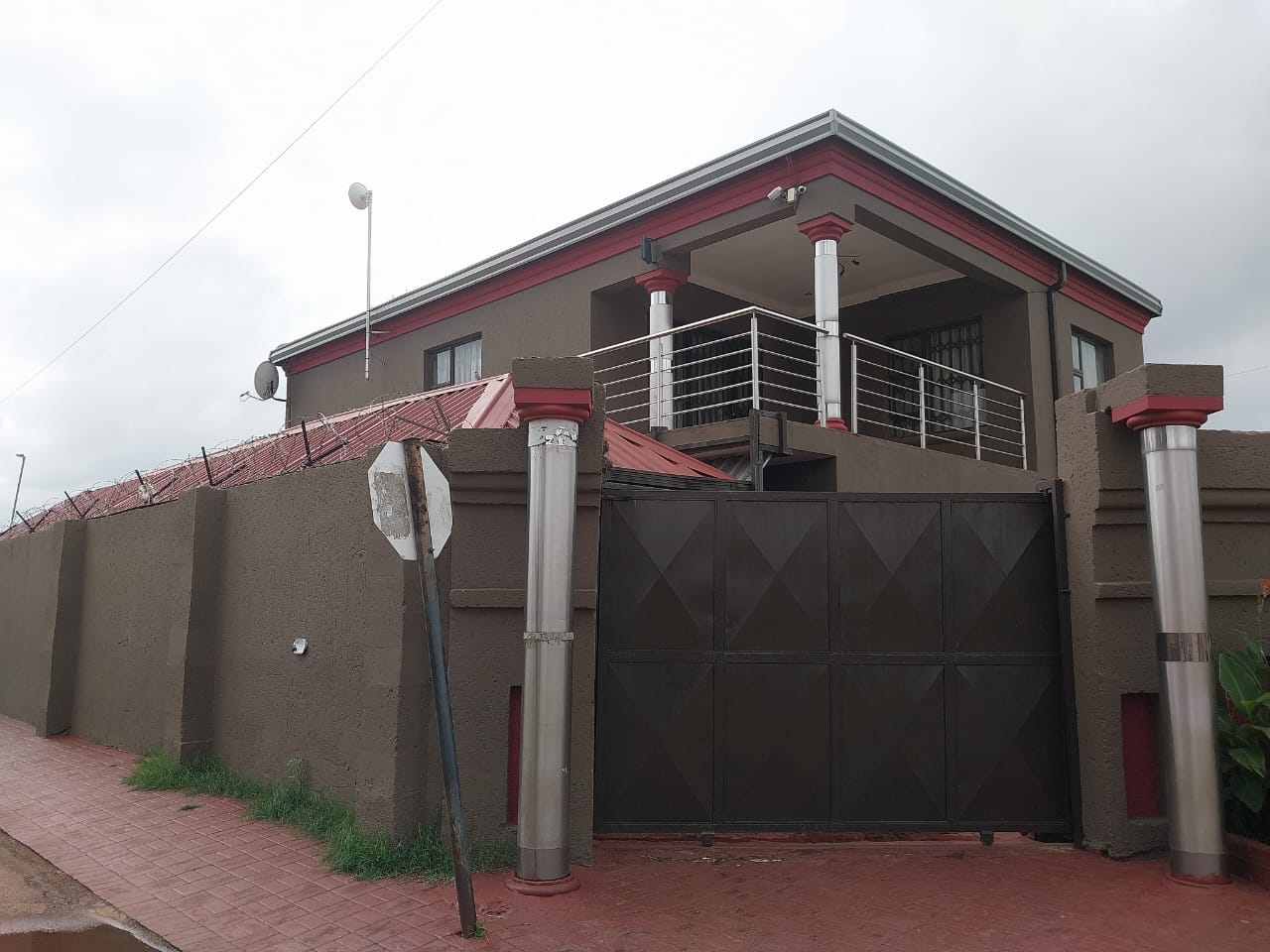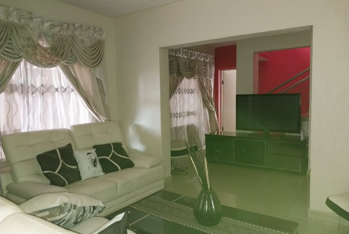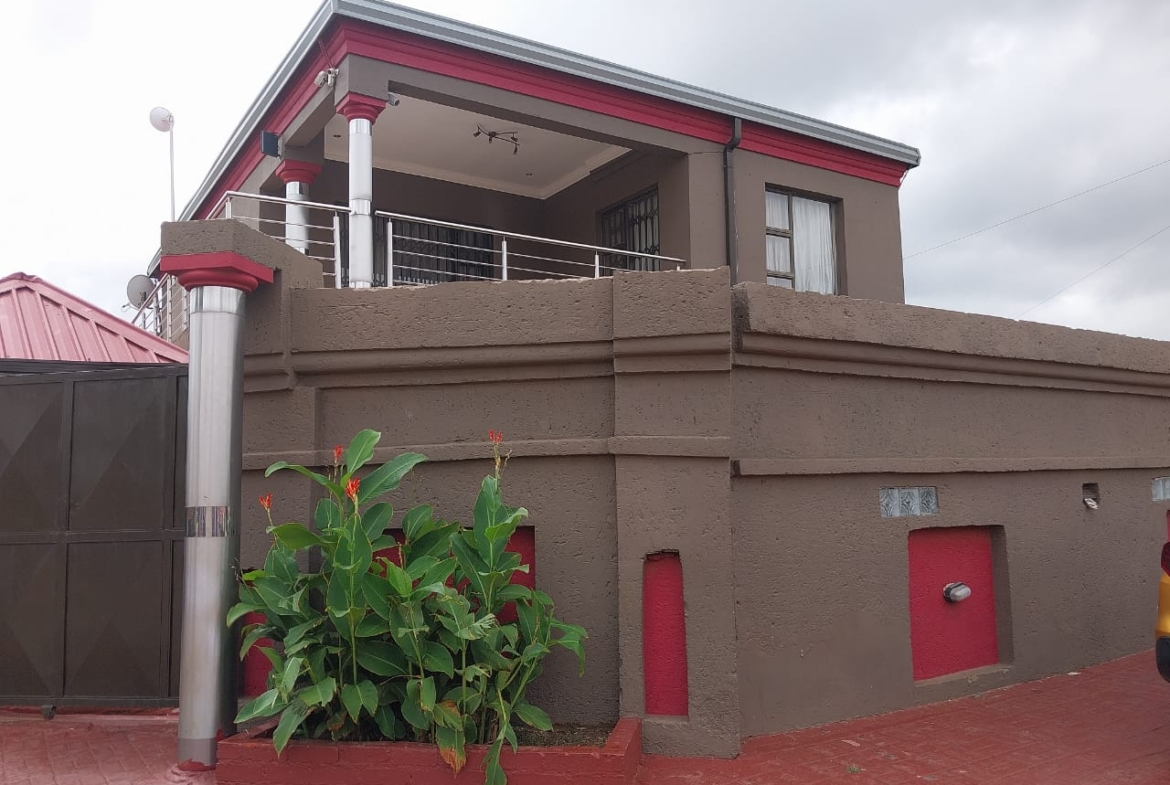 Grab this property before its gone for you to have a roof over your heads and make money at the same time. 4 Bedroomed fully fitted 2 upstairs and 2 downstairs, main with n-suit. Fully fitted kitchen tilled leading to a tilled lounge and guest toilet. Upstairs 2nd lounge and Dinning room. Outside fully tiled and fully walled.