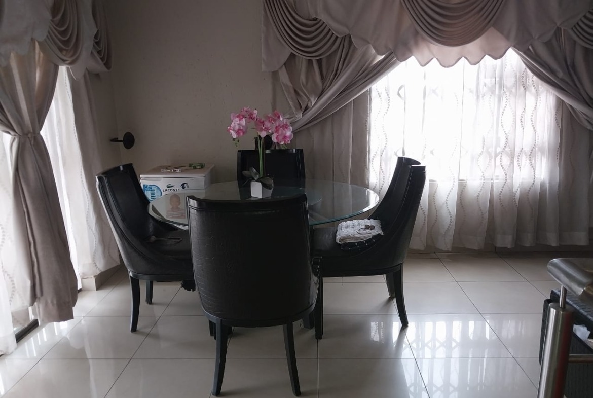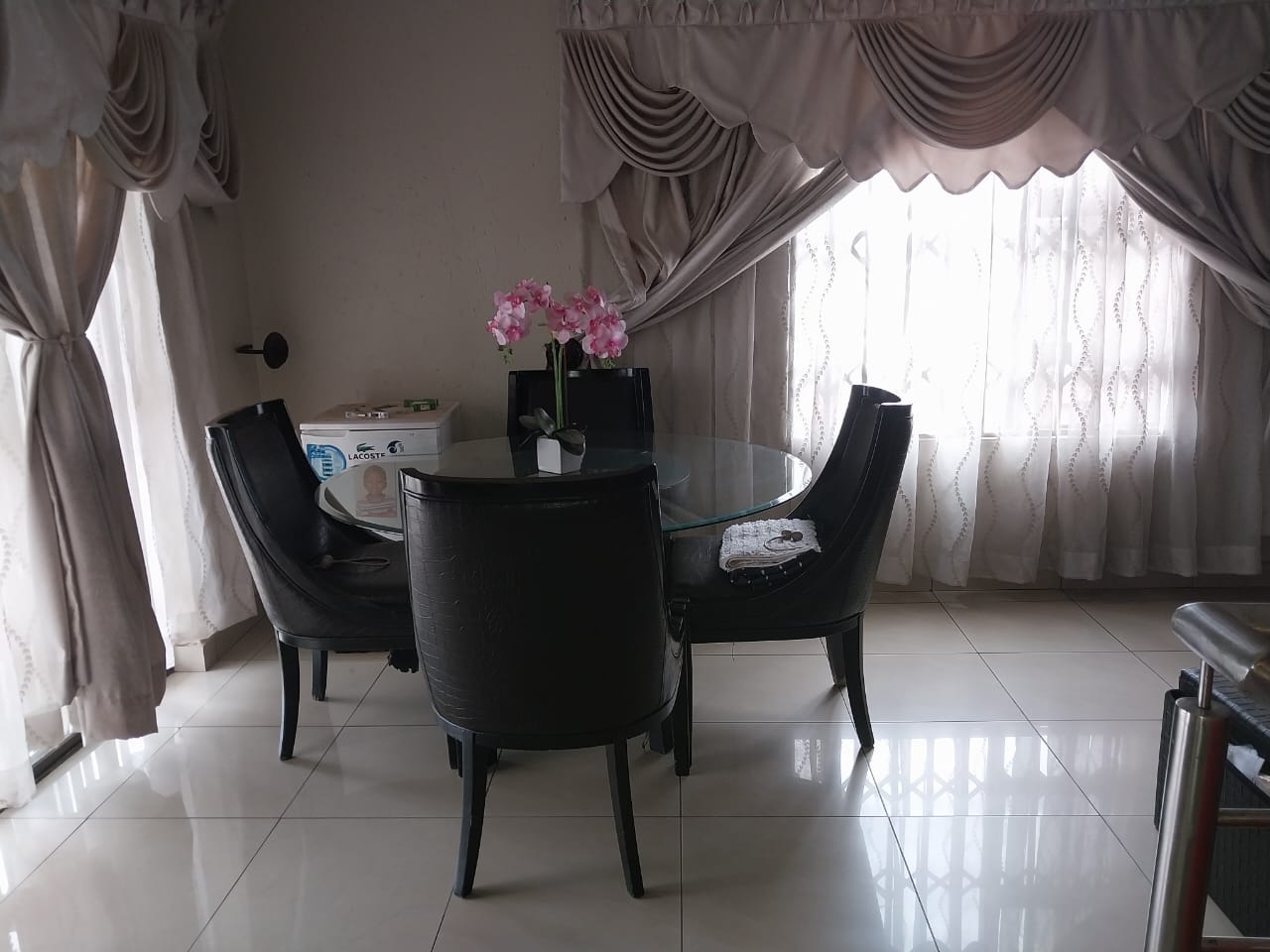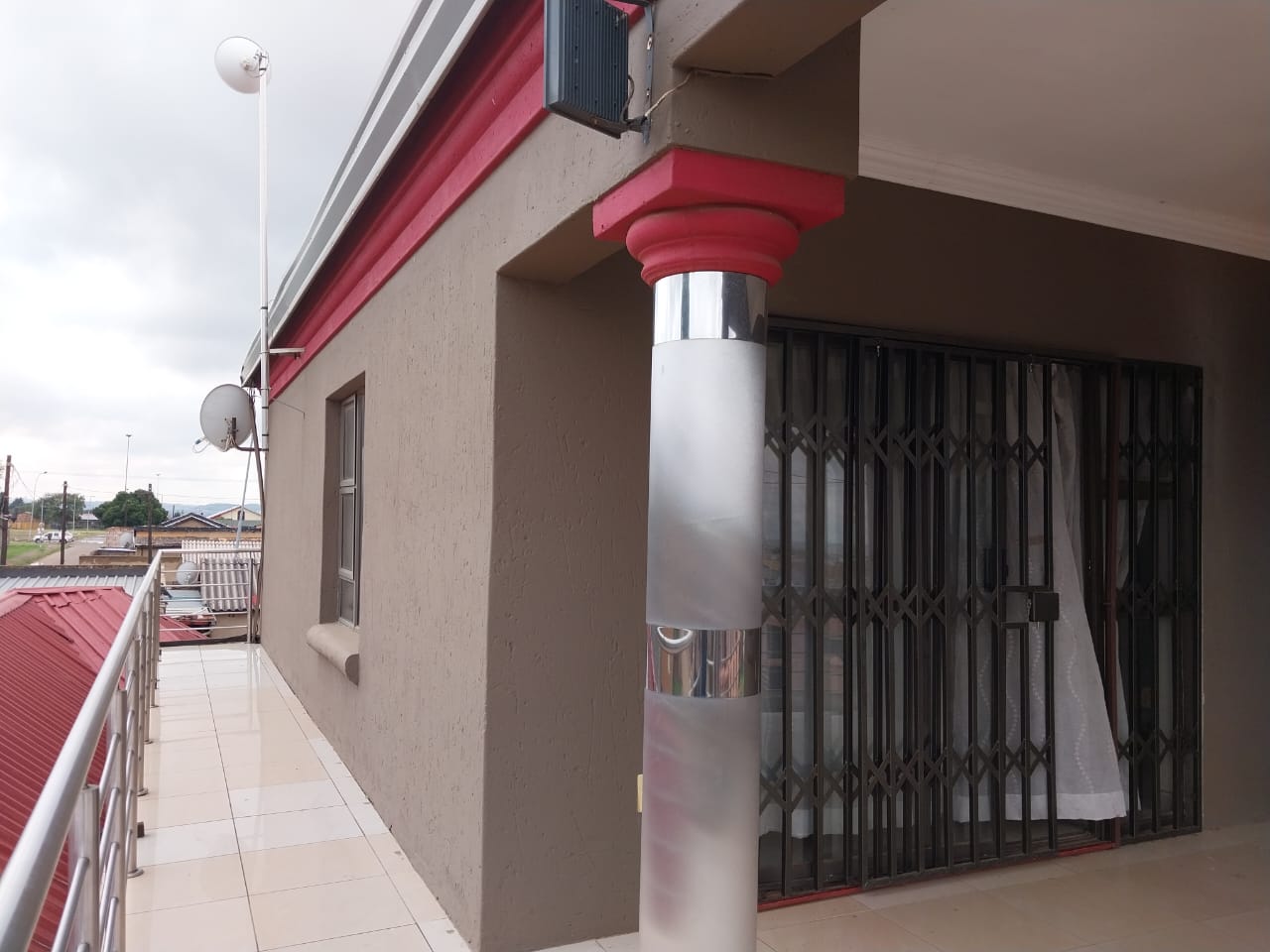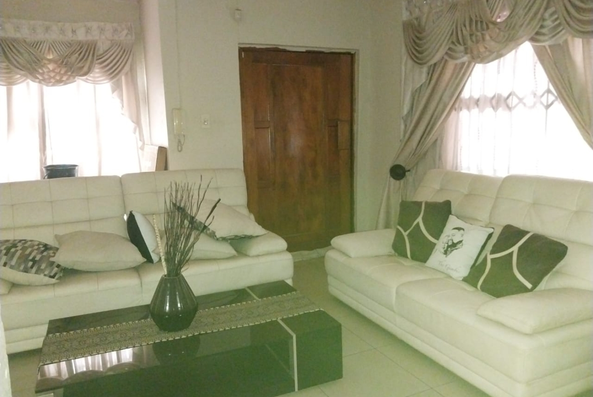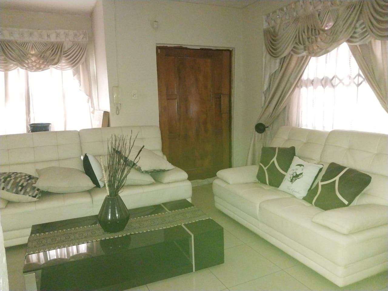 Grab this property before its gone for you to have a roof over your heads and make money at the same time. 4 Bedroomed fully fitted 2 upstairs and 2 downstairs, main with n-suit. Fully fitted kitchen tilled leading to a tilled lounge and guest toilet. Upstairs 2nd lounge and Dinning room. Outside fully tiled and fully walled.