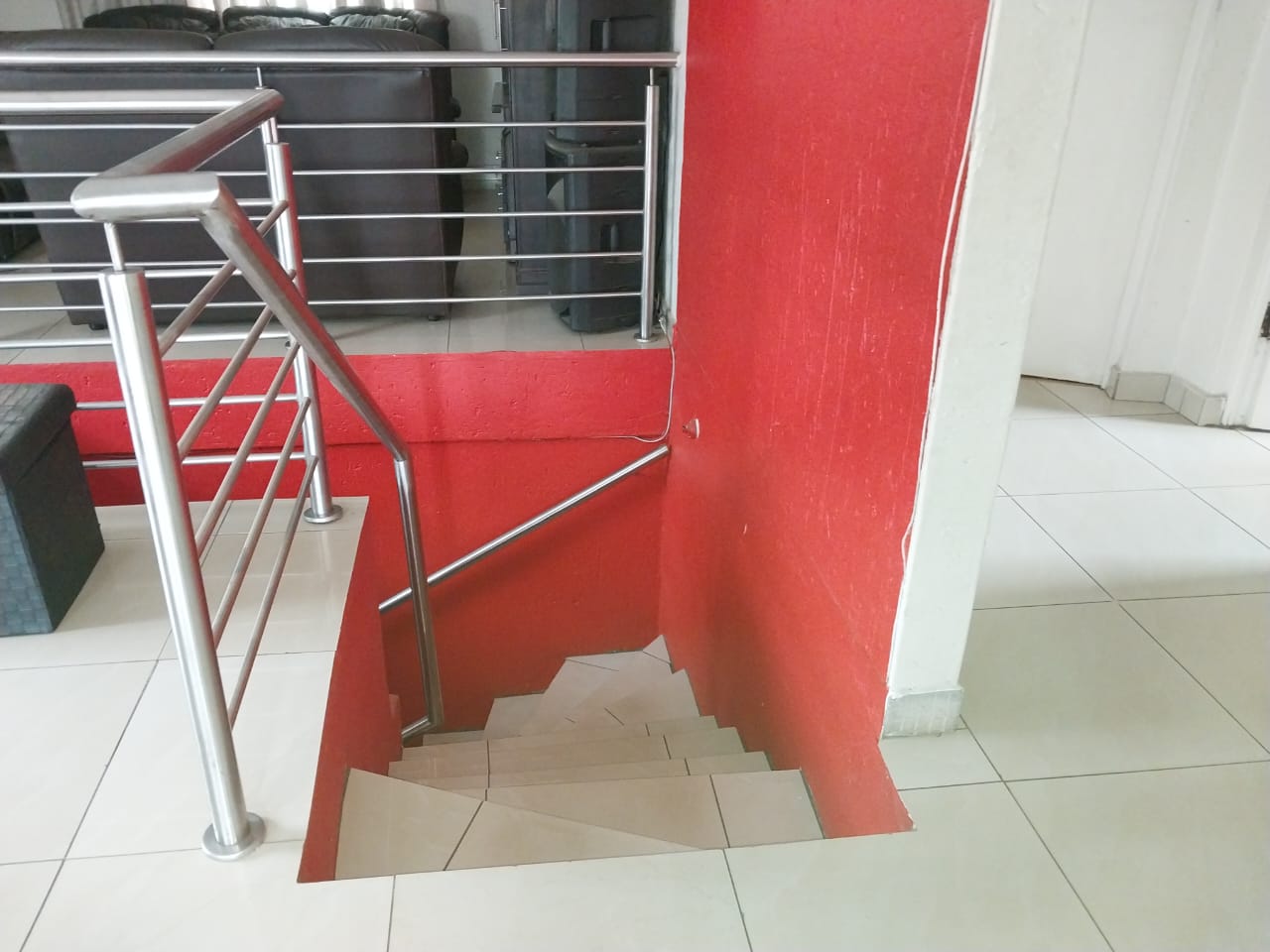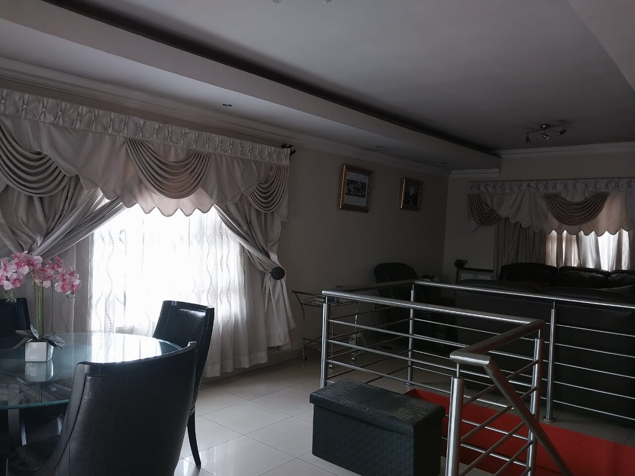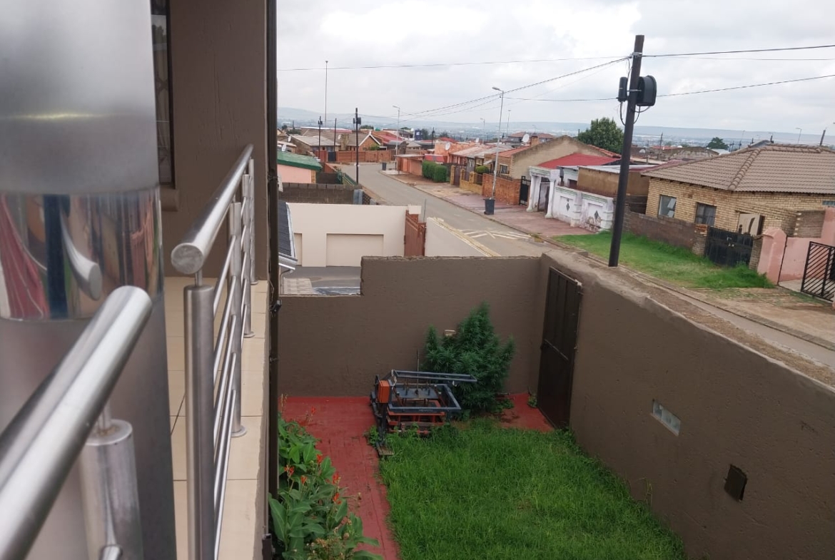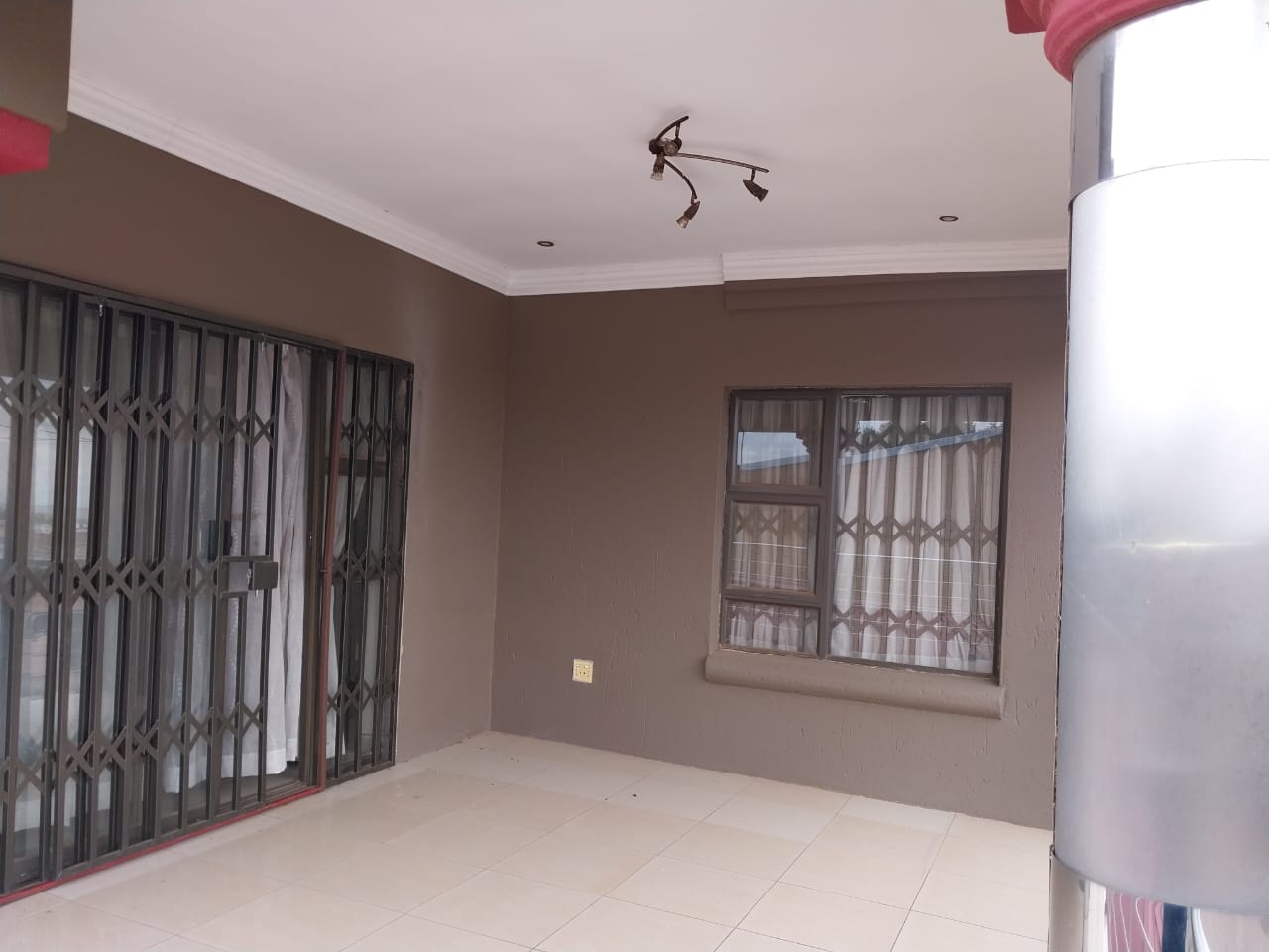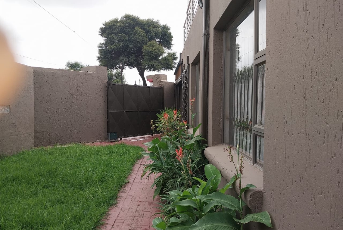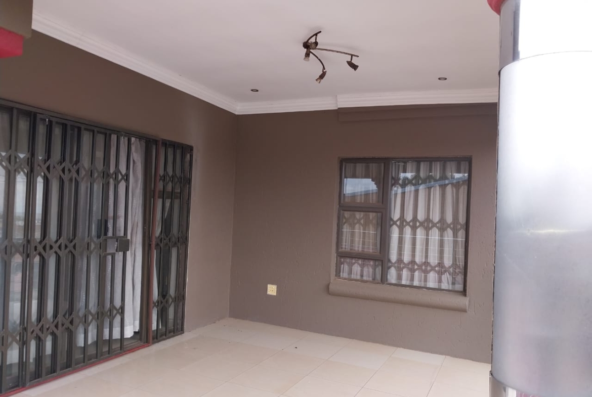 Grab this property before its gone for you to have a roof over your heads and make money at the same time. 4 Bedroomed fully fitted 2 upstairs and 2 downstairs, main with n-suit. Fully fitted kitchen tilled leading to a tilled lounge and guest toilet. Upstairs 2nd lounge and Dinning room. Outside fully tiled and fully walled.