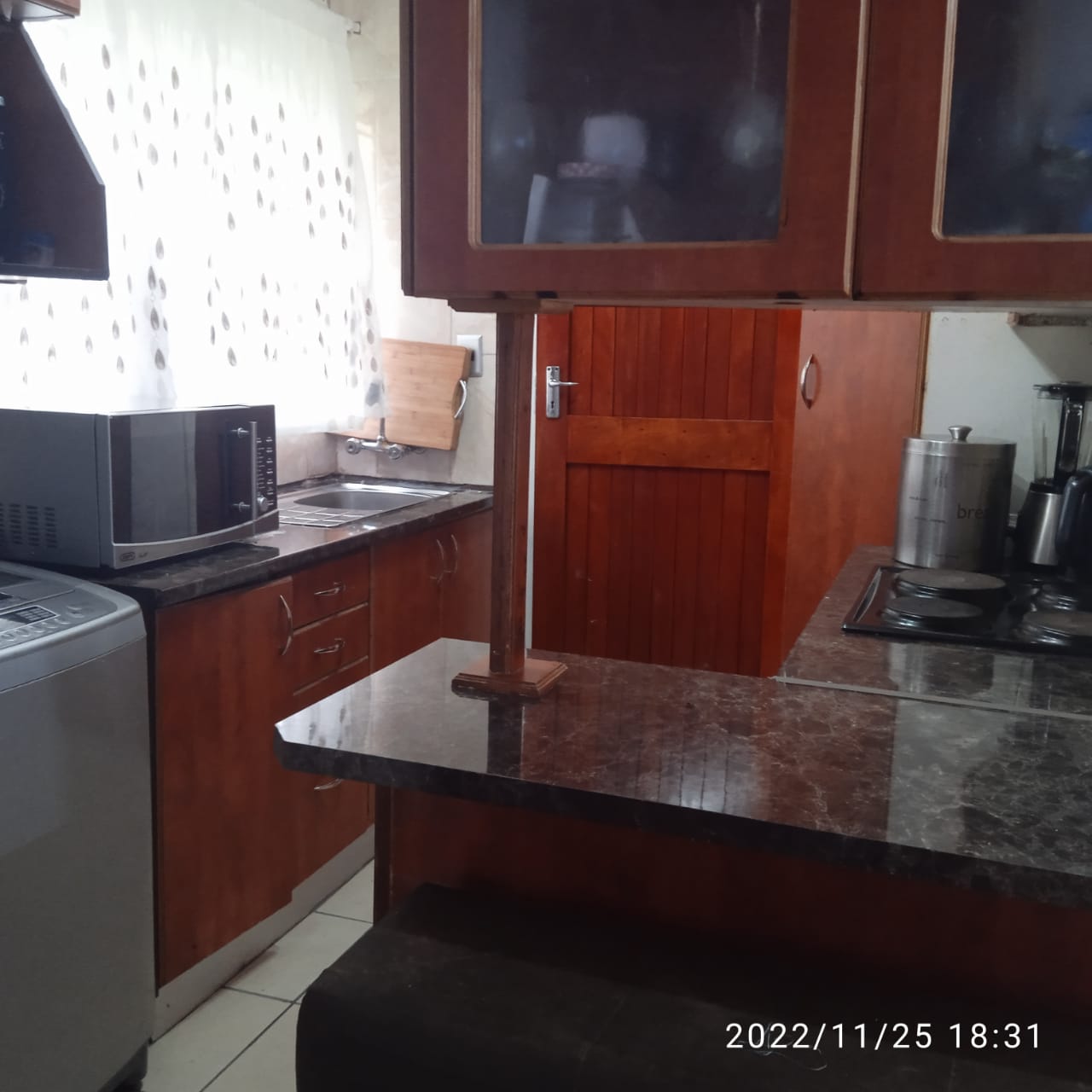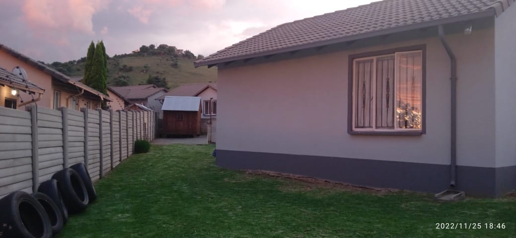 It’s situated in a complex called Naturena Oaks and it offers 2 bedrooms with Bics, separated bath and toilet and it’s tilled throughout the house. A modern kitchen with stove and the wine storage cupboard, a sitting room. This unit is a corner stand with a big yard in the complex and security is 24 hour in and there is few unit in the complex.