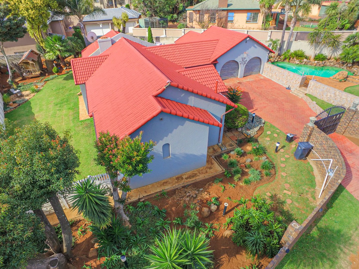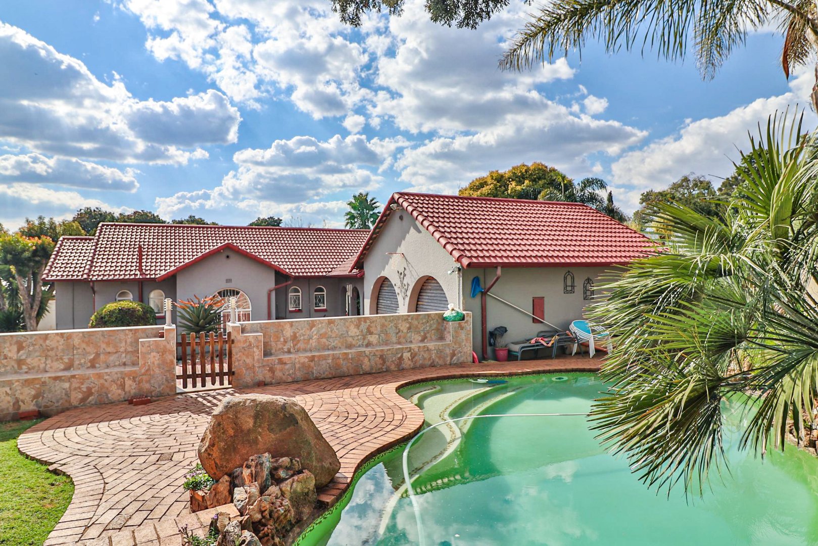 Beautiful pool area, with a built-in braai, Double Garage and Maids quarters