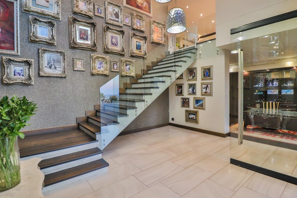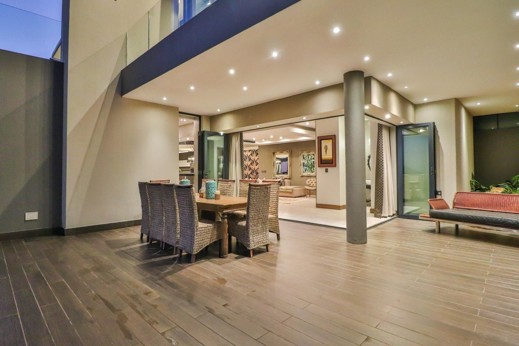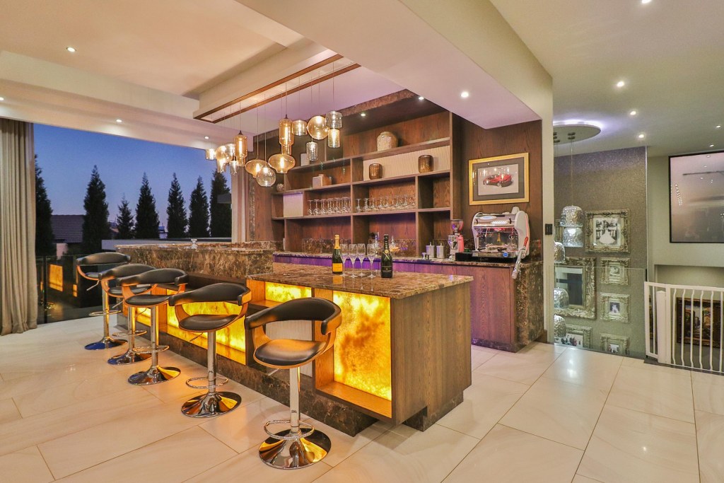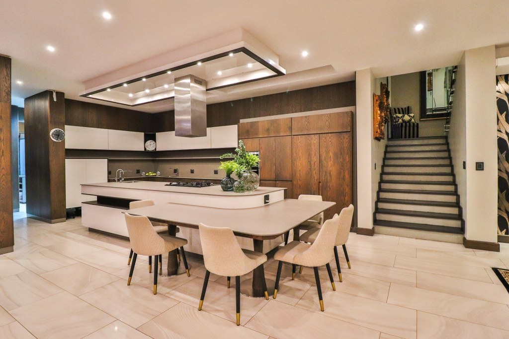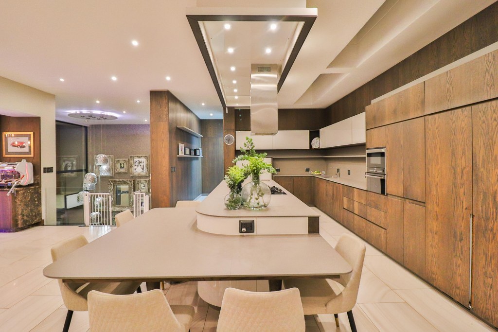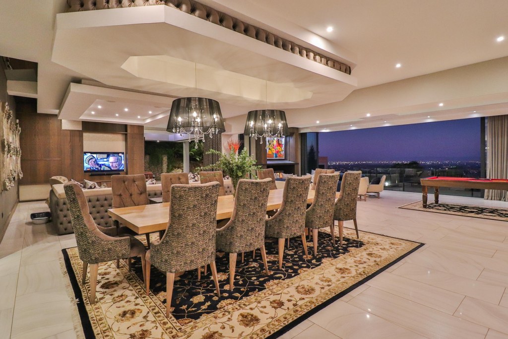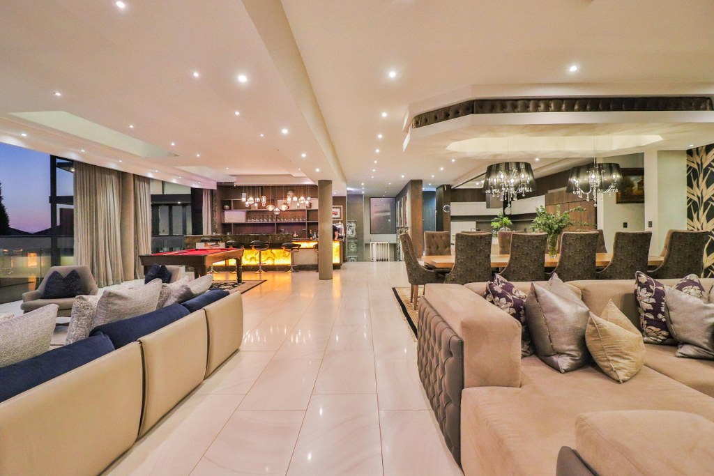 Featuring an impressive double volume entrance with Roberto Cavalli tiles, flowing into a private study. The main relaxed open plan living area offers a state of the art kitchen designed by Jean de Rant and a separate scullery with a walk in cold room.