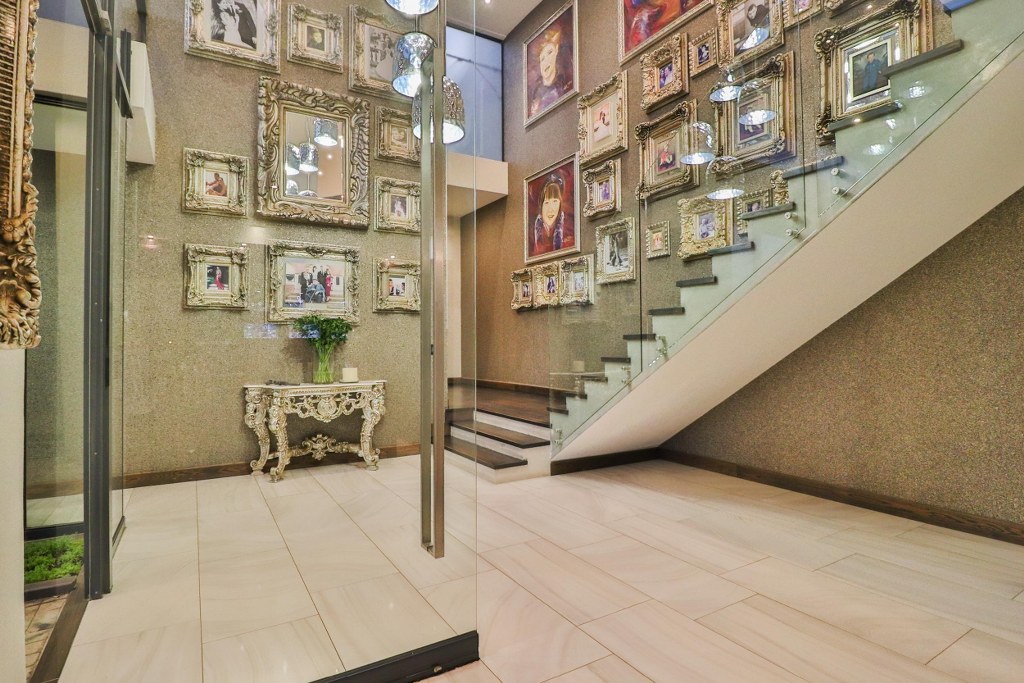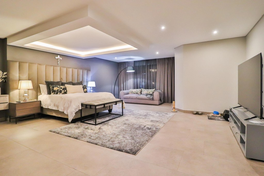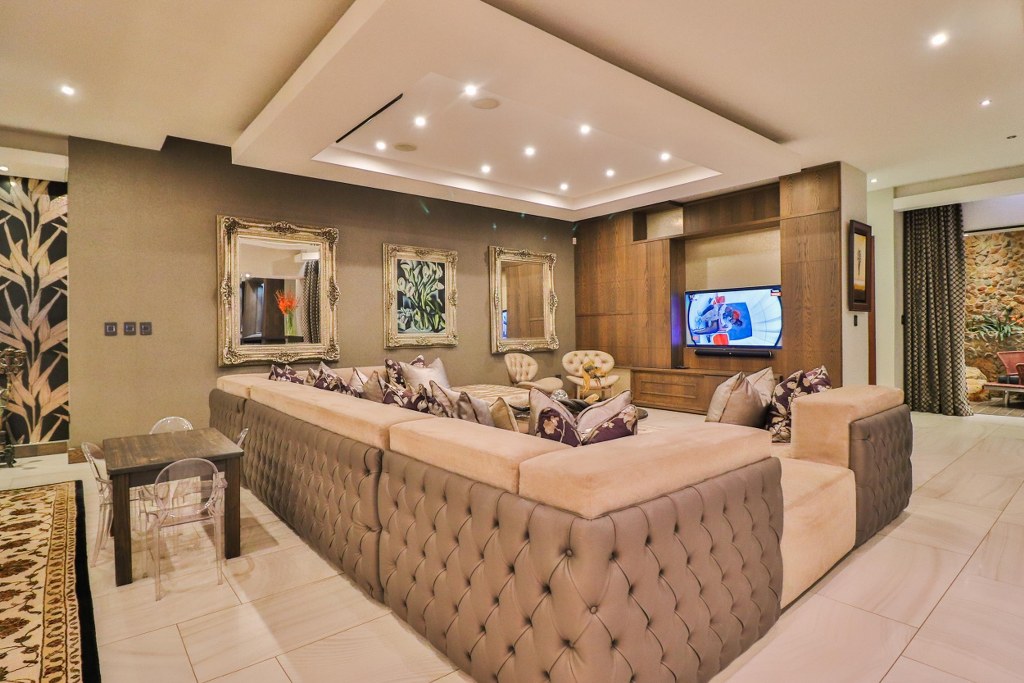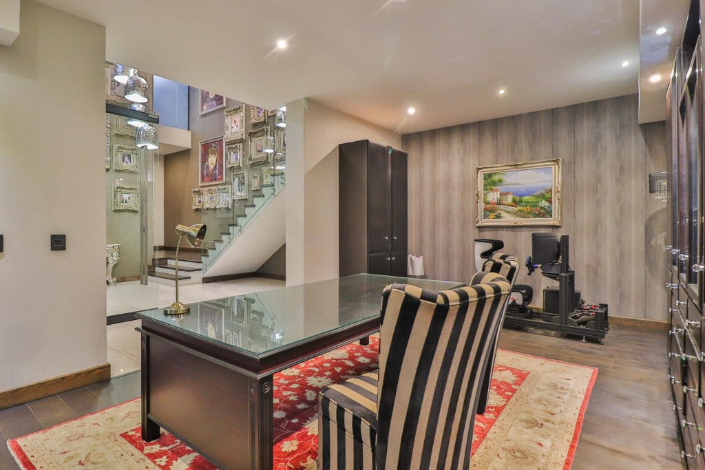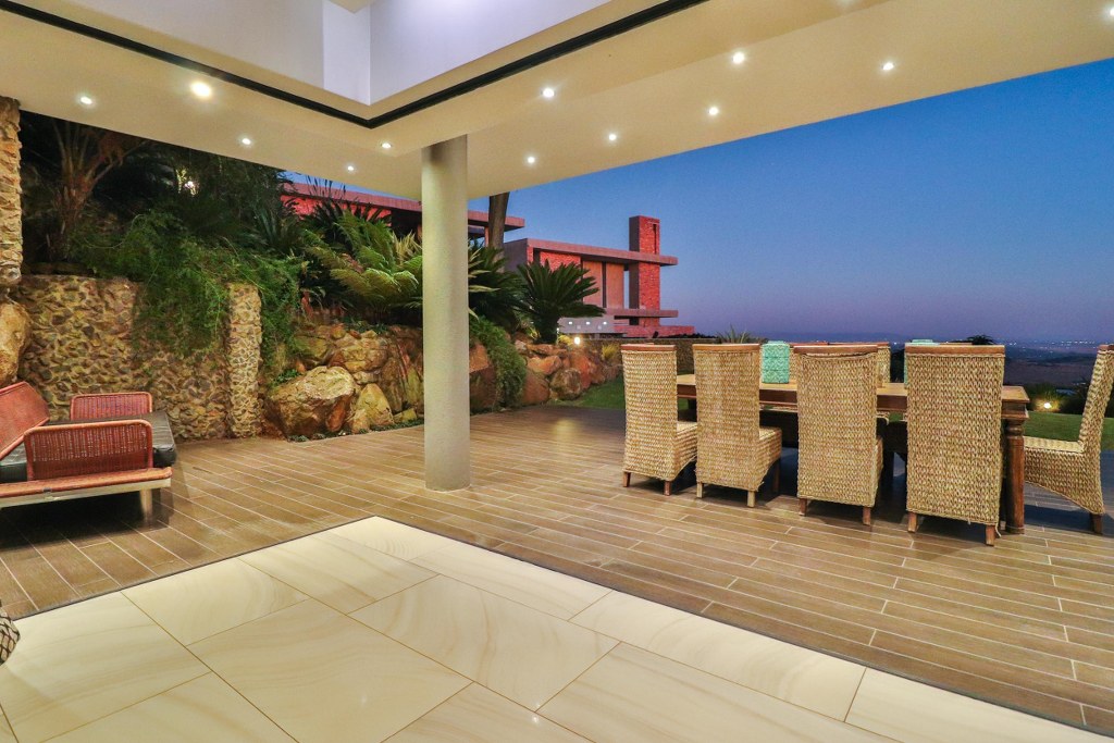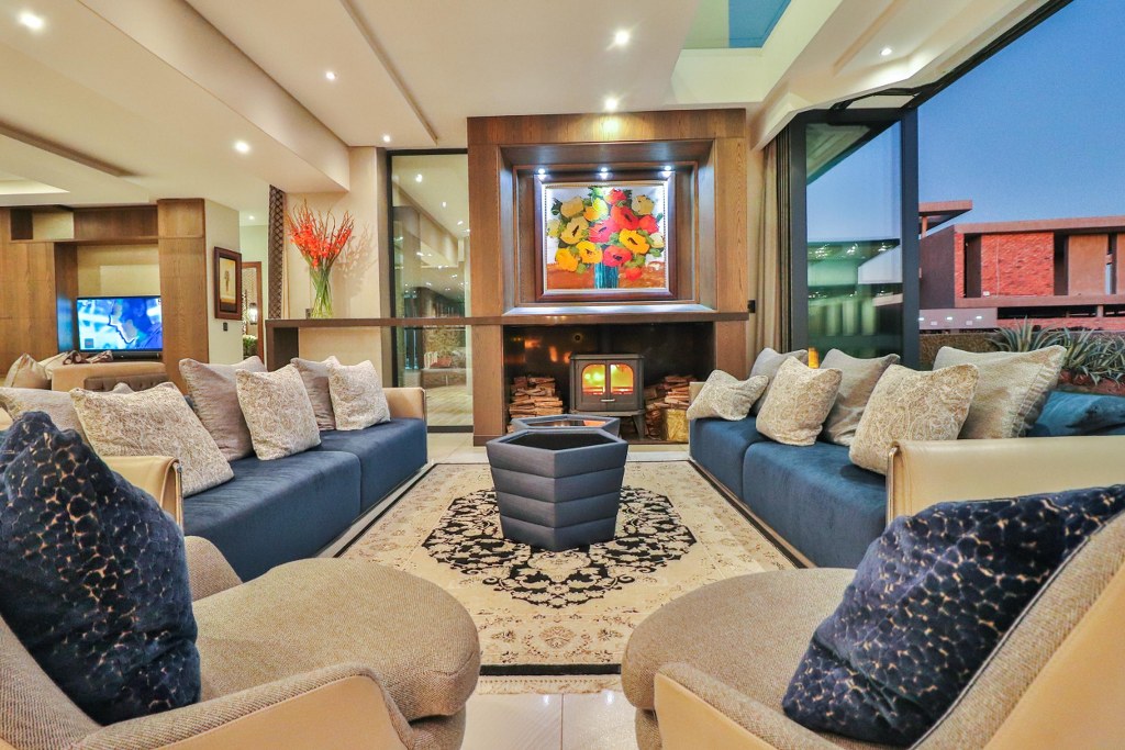 Featuring an impressive double volume entrance with Roberto Cavalli tiles, flowing into a private study. The main relaxed open plan living area offers a state of the art kitchen designed by Jean de Rant and a separate scullery with a walk in cold room.