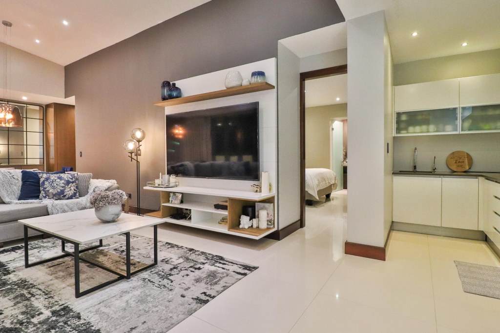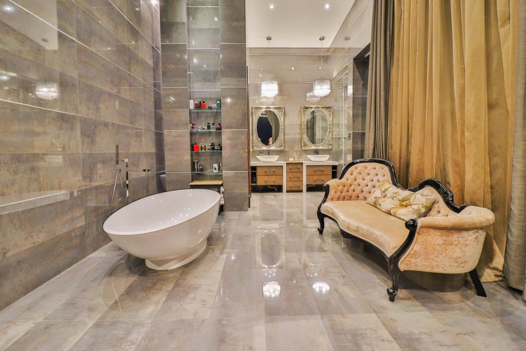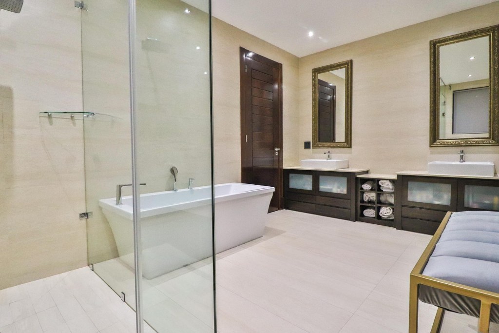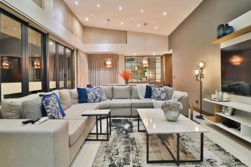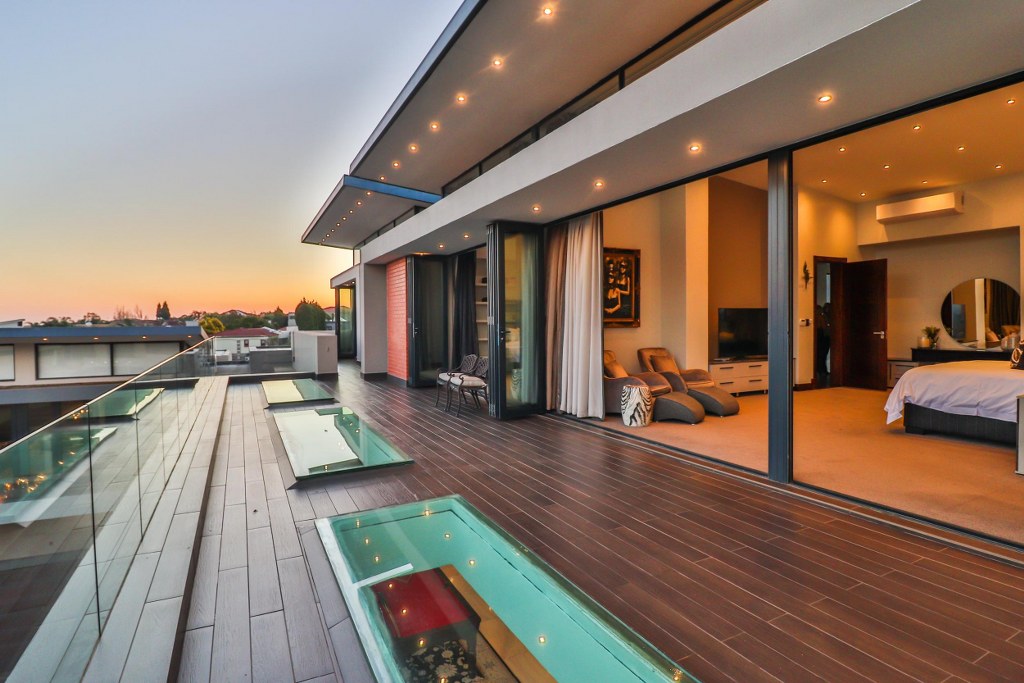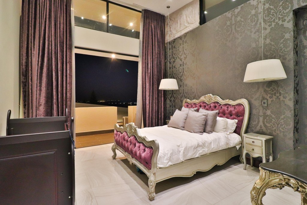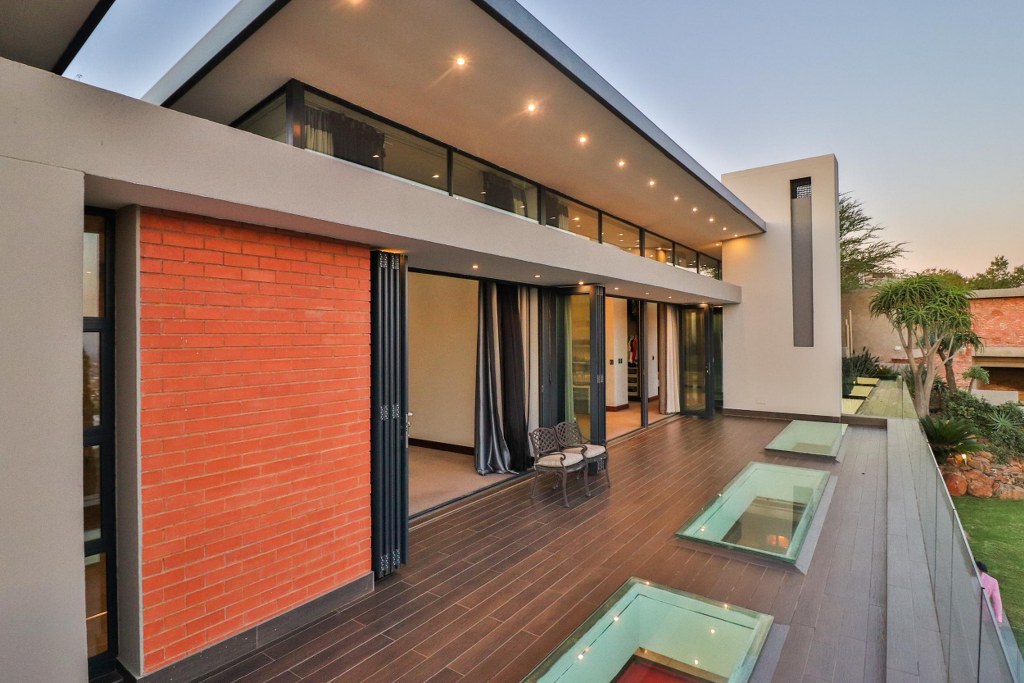 Featuring an impressive double volume entrance with Roberto Cavalli tiles, flowing into a private study. The main relaxed open plan living area offers a state of the art kitchen designed by Jean de Rant and a separate scullery with a walk in cold room.
