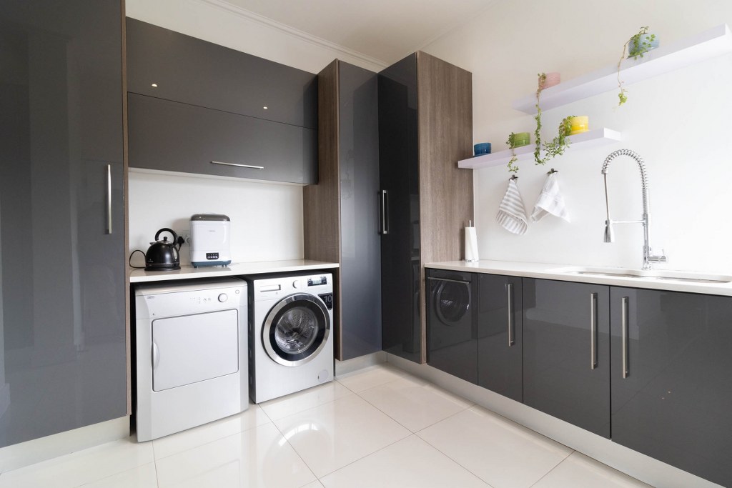 Ultra-modern gourmet kitchen featuring a sleek design and high-end finishes. The separate scullery ensures functionality.