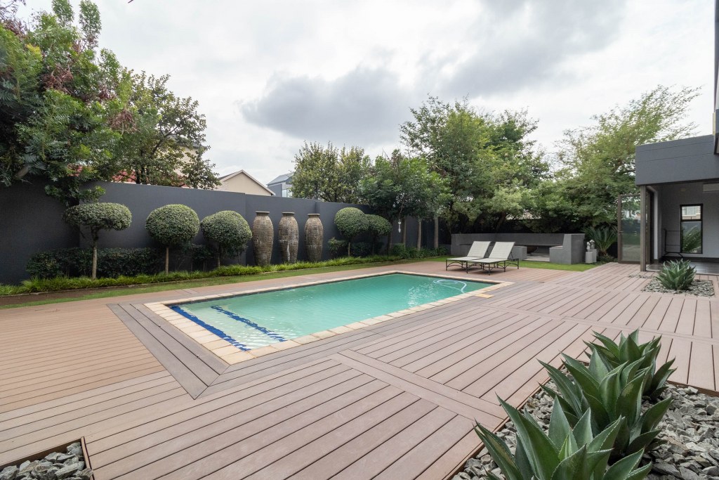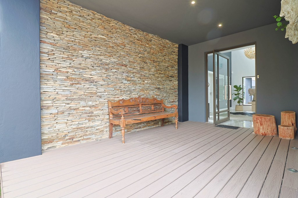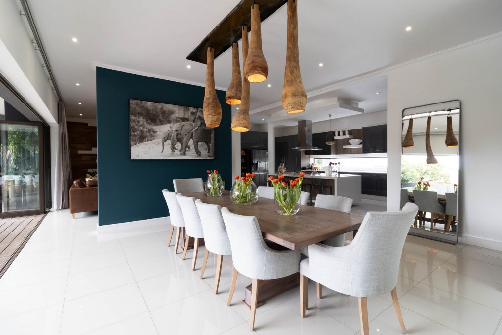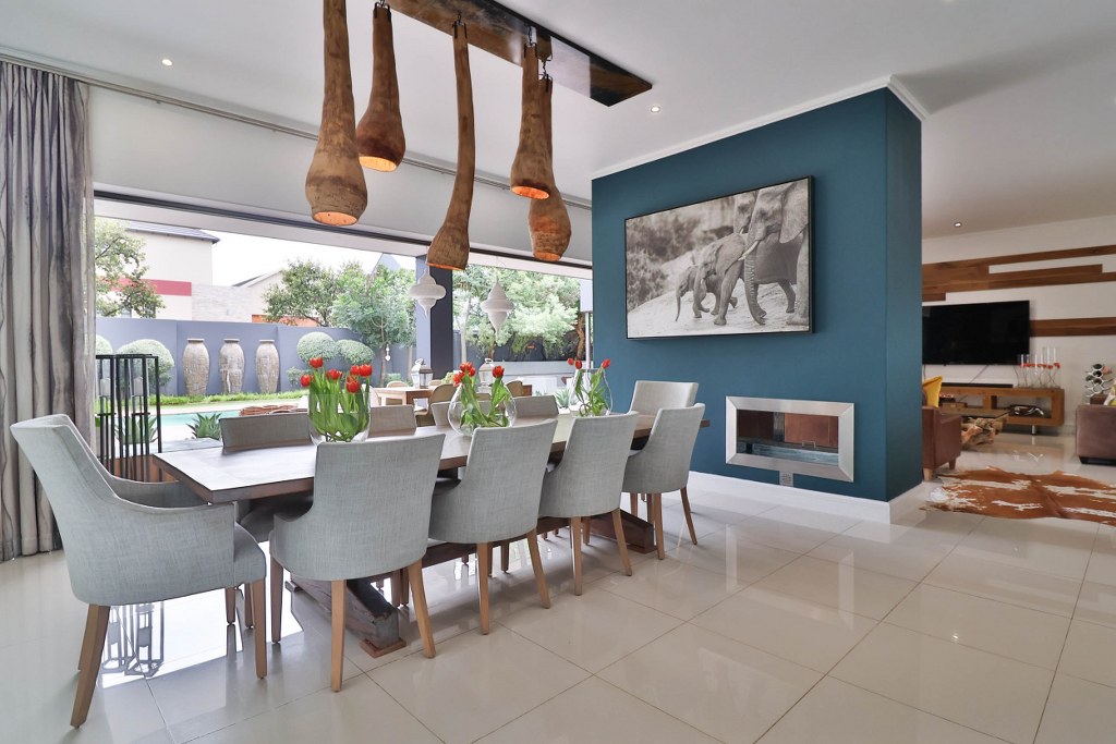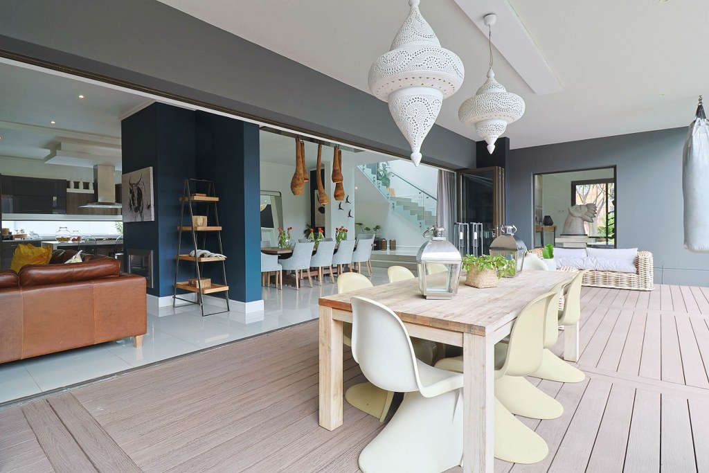 The lounge and the dining room seamlessly connect to the outdoors through stack doors leading to a picturesque pool and undercover patio. Perfect for guests enjoying serene evenings.