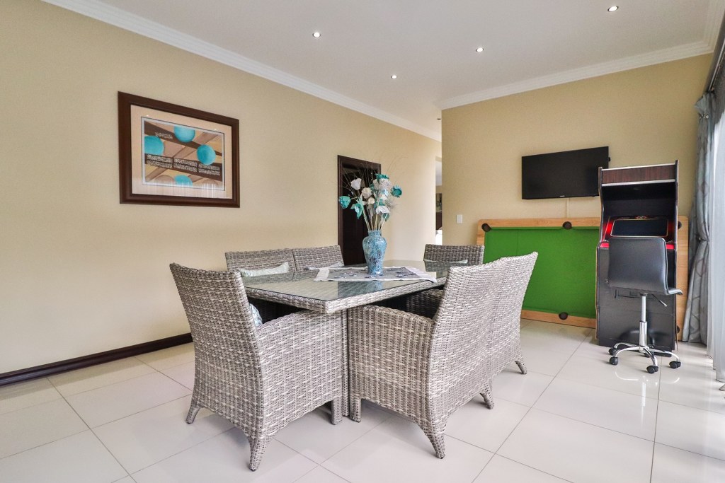 On entering this beautiful warm home with lots of natural light you are welcomed with a double volume entrance hall flowing into an open plan living area, with a modern gourmet kitchen offering granite tops and a separate scullery, a spacious lounge and dining room.