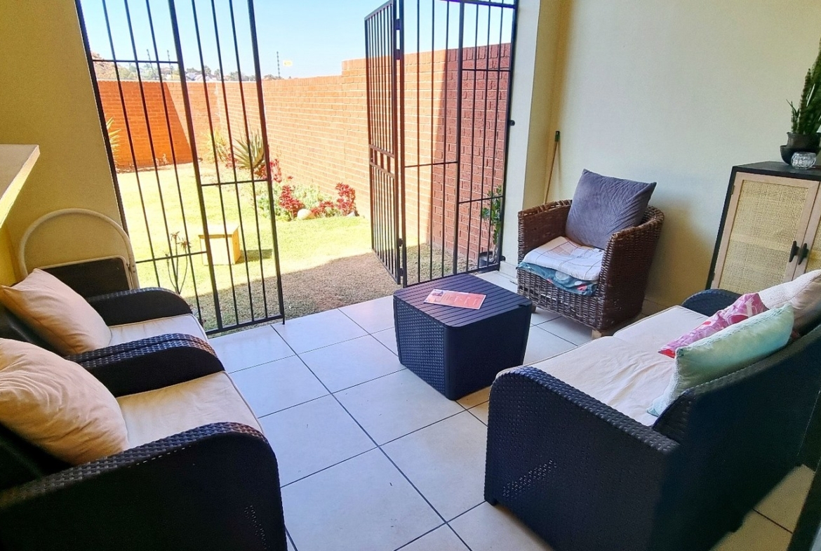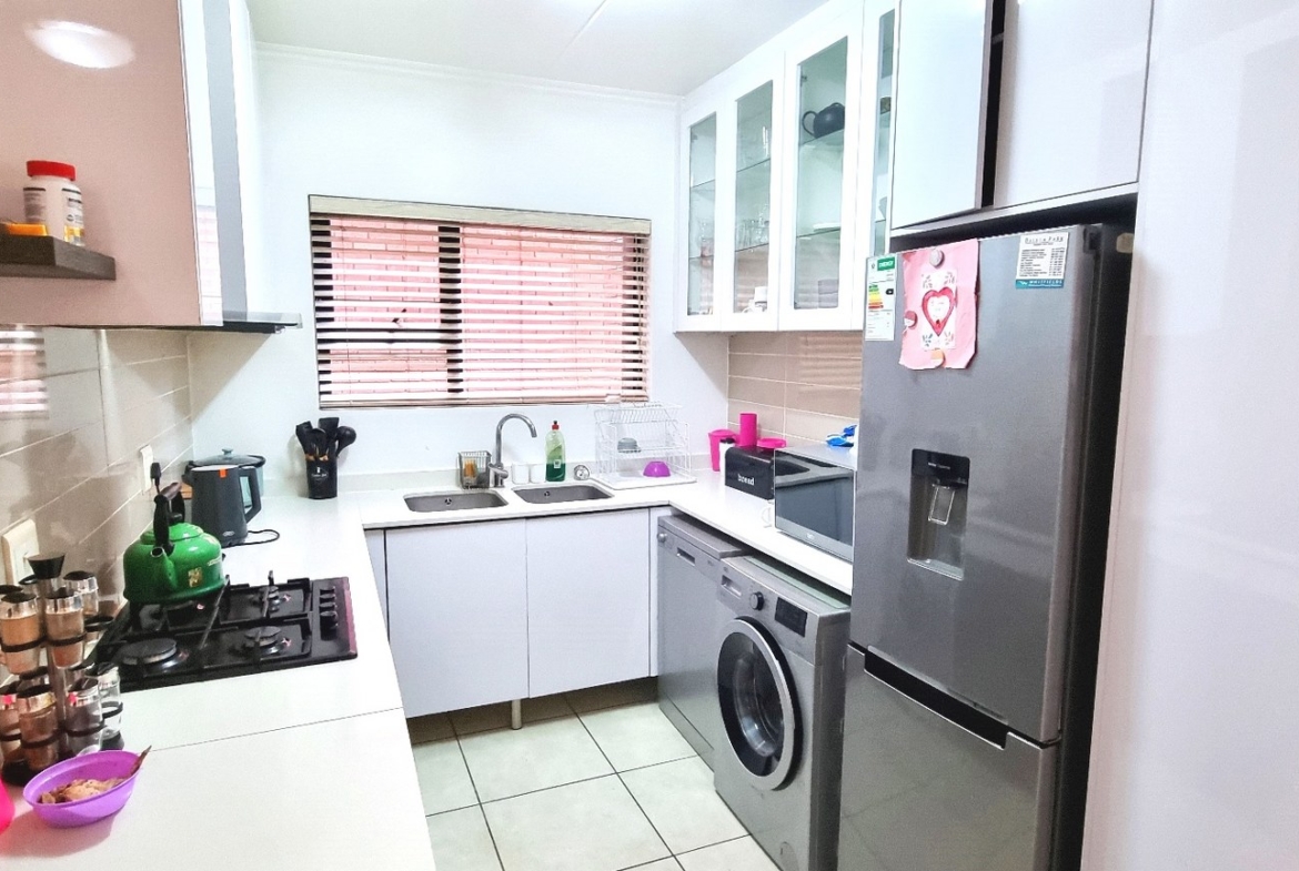 Discover your dream home with this beautiful 3-bedroom property featuring a large private garden, perfect for your pets and kids to play. Nestled safely and securely with the koppie as your backdrop, this home offers open-plan living with a spacious lounge and dining area that seamlessly connects to the updated kitchen. Equipped with a gas stove, the kitchen comes with all appliances, including a washing machine, dishwasher, fridge, and microwave.