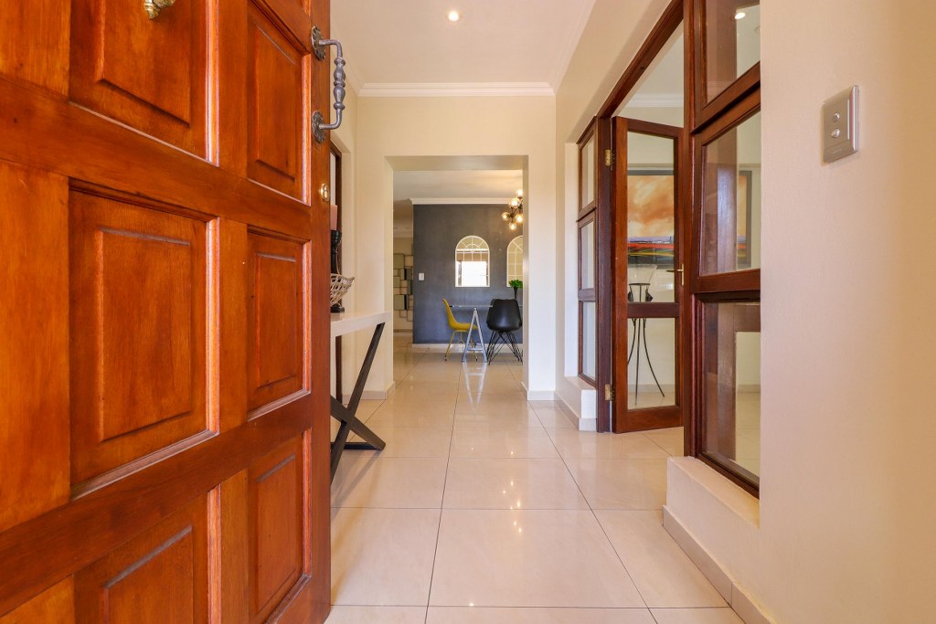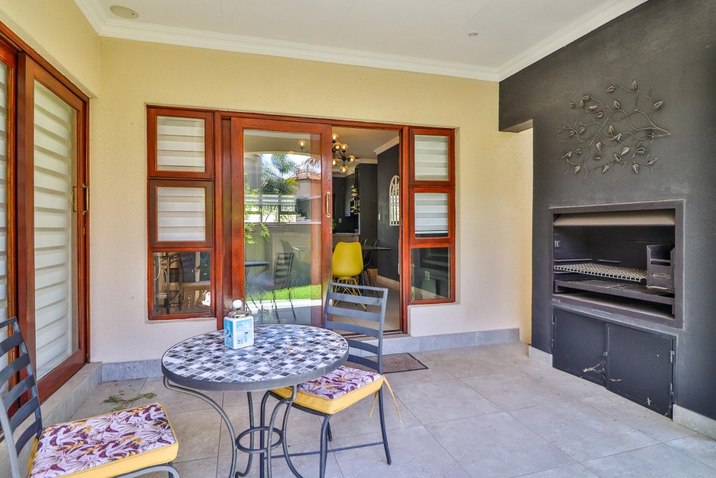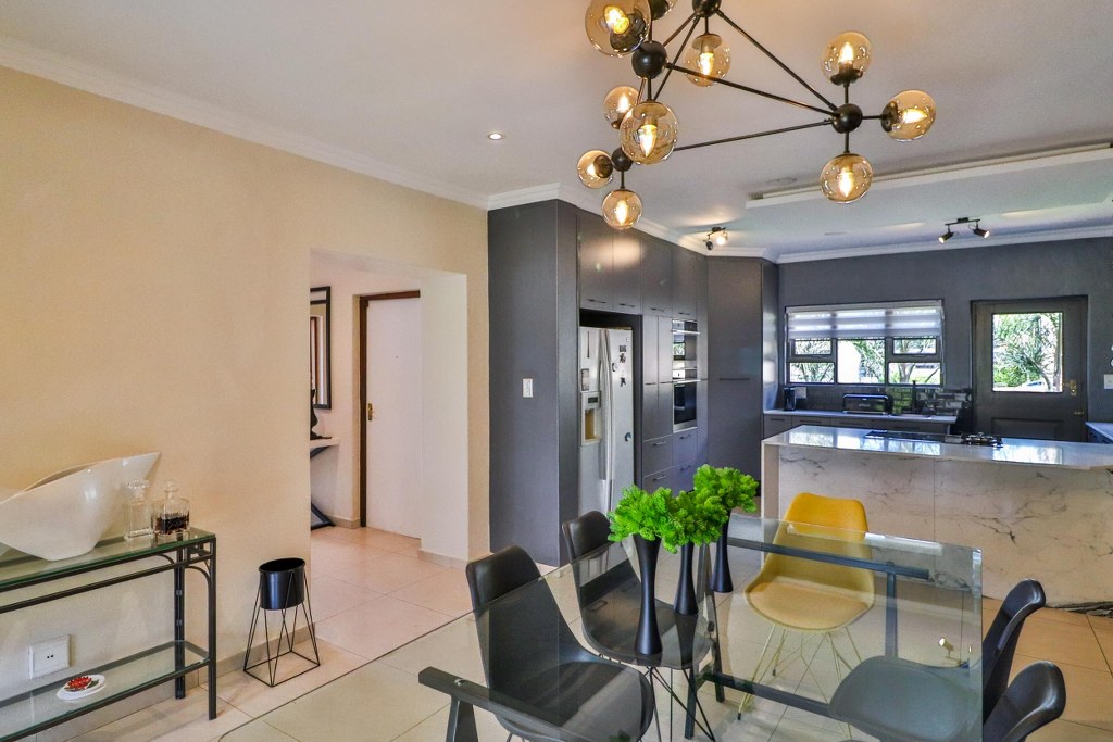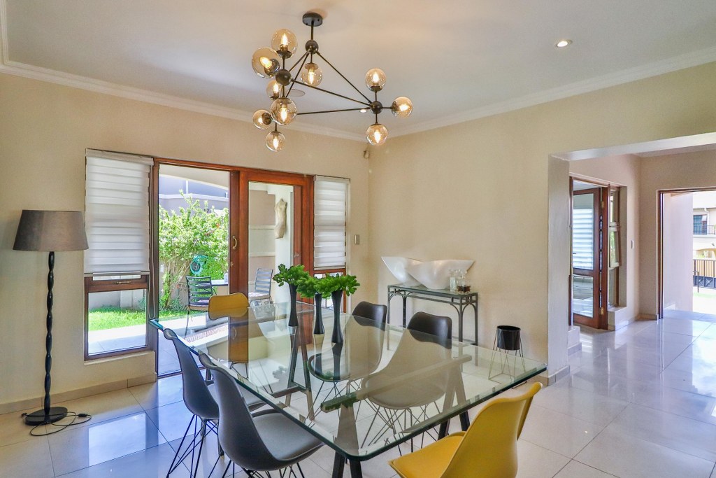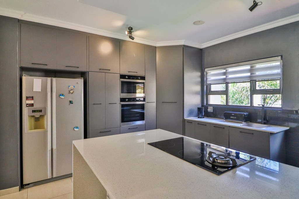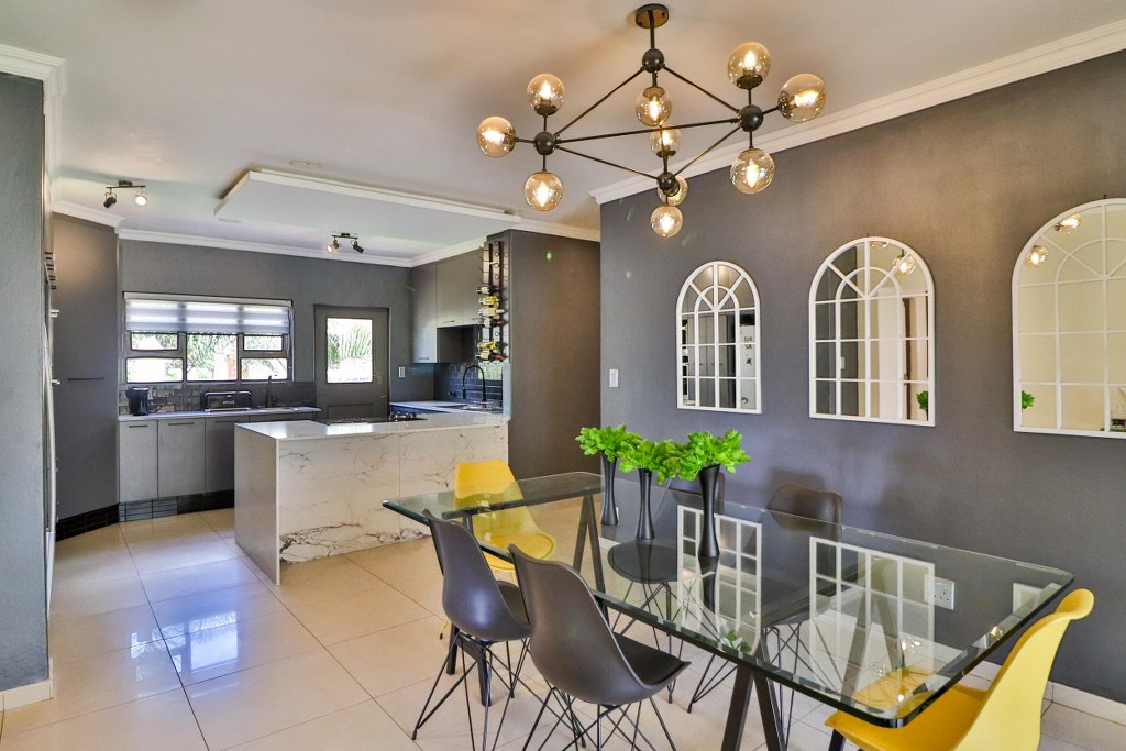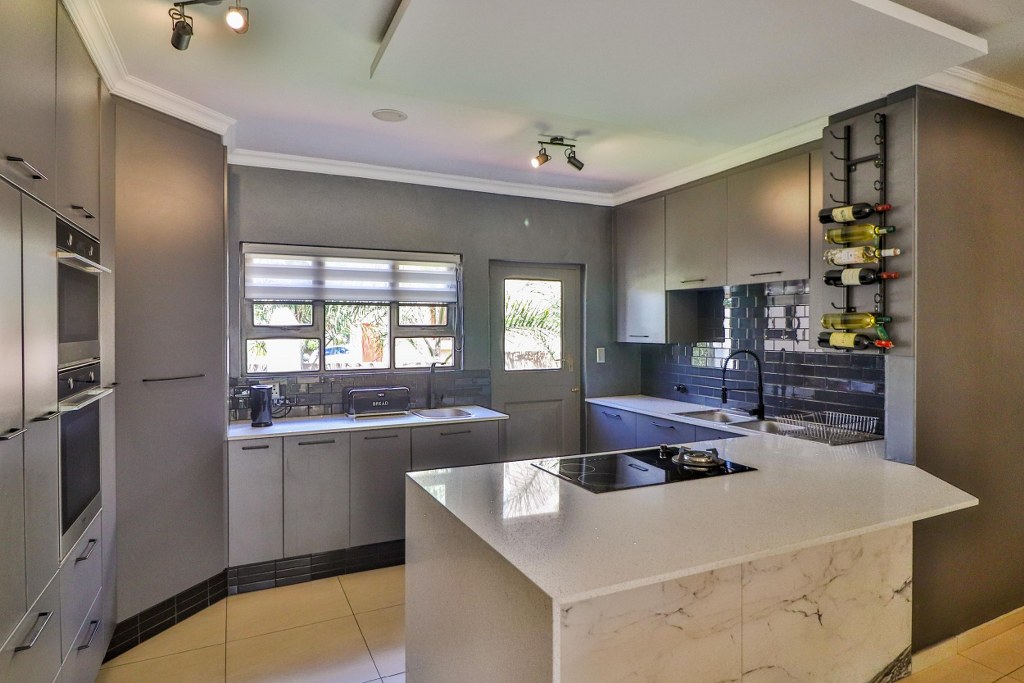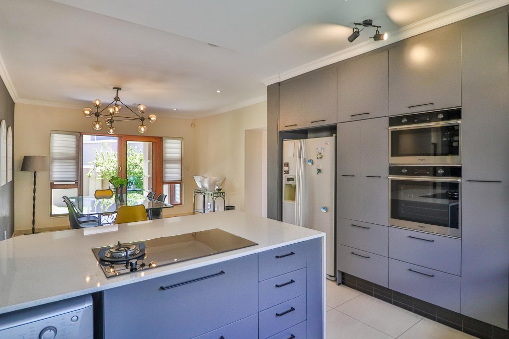 The open plan kitchen is really one that gets the creative juices flowing, the sleek modern design is truly breath taking . This is a space that you will definitely just need to spend extra time in. The kitchen over looks the open plan dining area which flows through wooden doors onto the cover patio area (complete with built in braai)