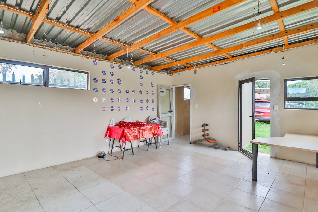 The highlight is the beautifully constructed church with a sound room and overhead projector, offering a unique space for various activities. Adjacent is a sizable flatlet by the pool area, perfect for guests or additional living space, although the pool requires some tender loving care.