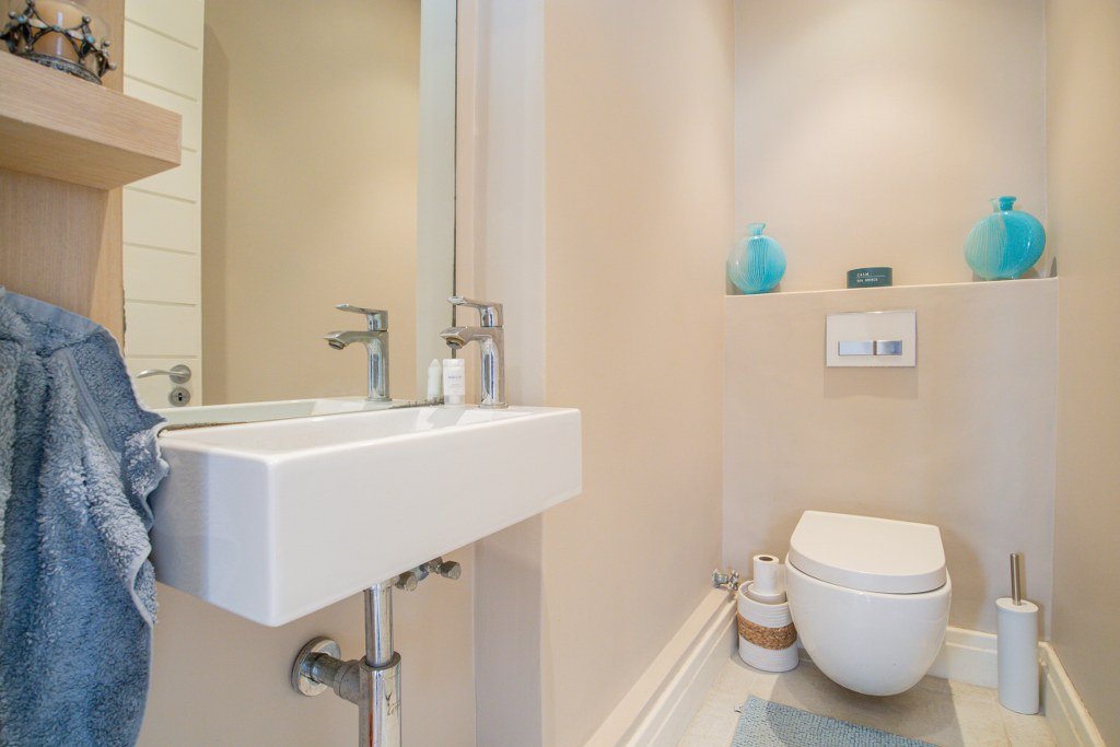 A full and modern bathroom services the two bedrooms and a separate guest toilet tops it off.