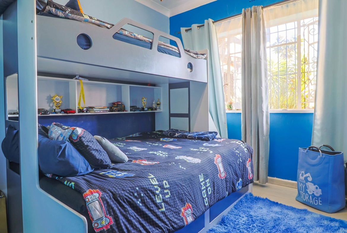 The lower level comprises three well-sized bedrooms, all fitted with built-in cupboards, and full bathroom that is elegantly finished. Upstairs, you’ll find a massive master suite complete with en-suite bathroom and extensive cupboard space — offering privacy and comfort.