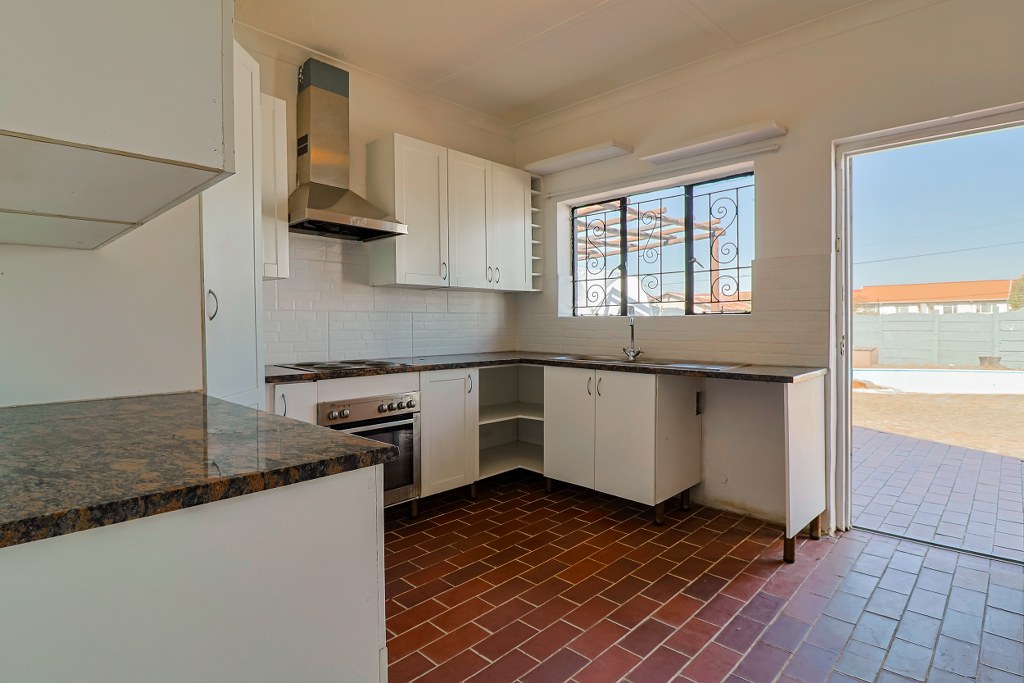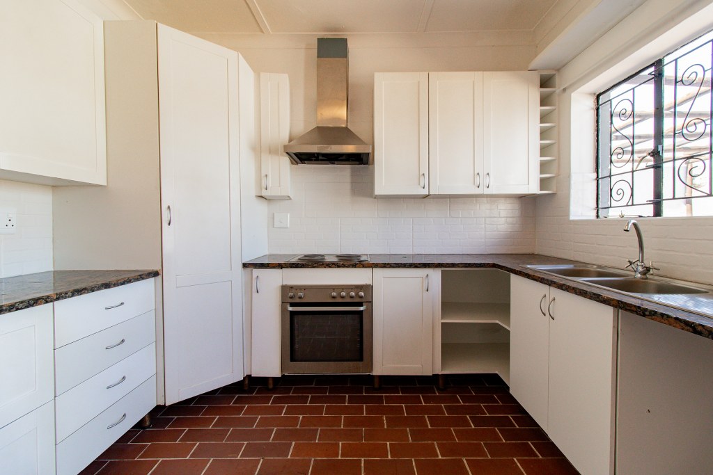 The cozy fitted kitchen with granite tops, recently refurbished, opens to the back area, seamlessly connecting indoor and outdoor living.