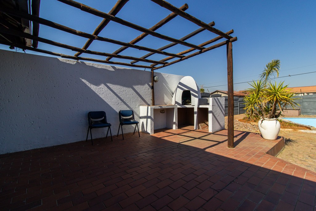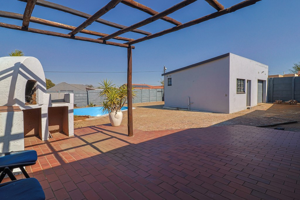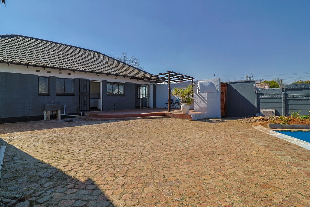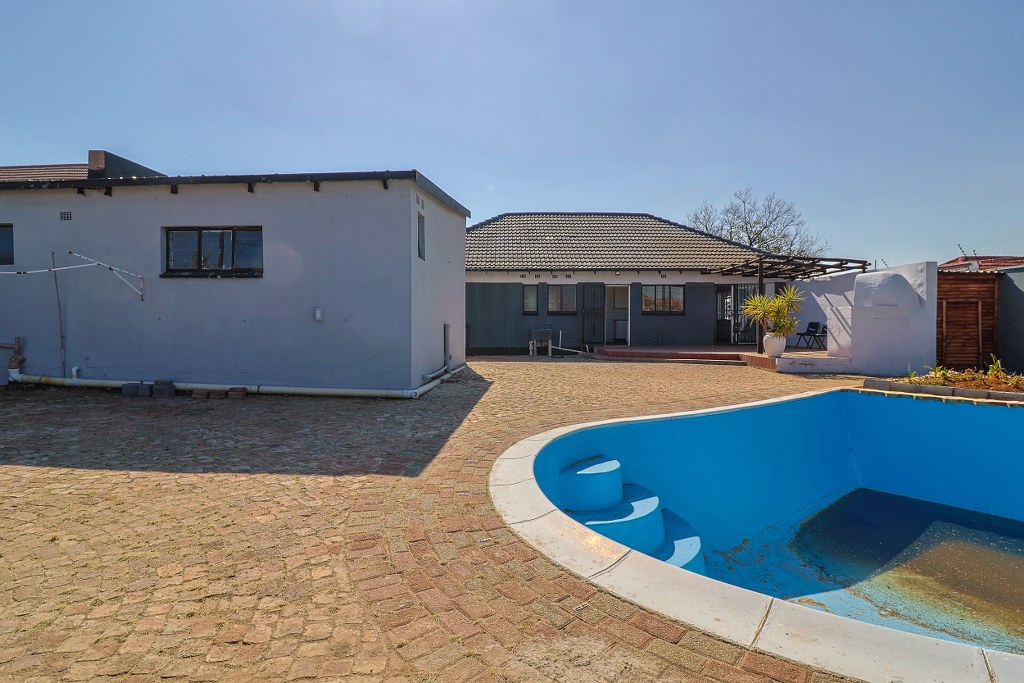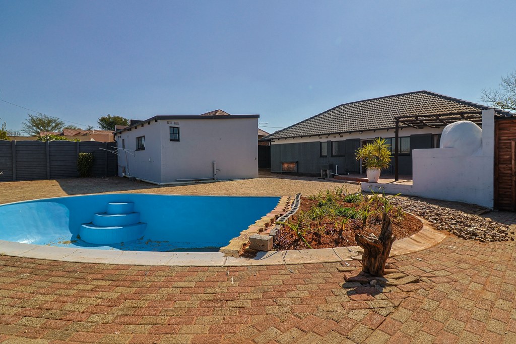 A generous backyard with a pool, providing plenty of space for family gatherings and entertaining friends.
