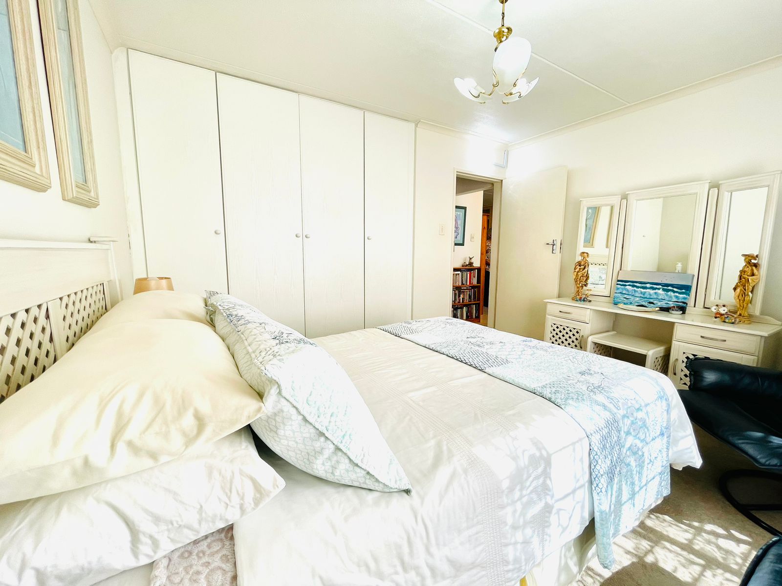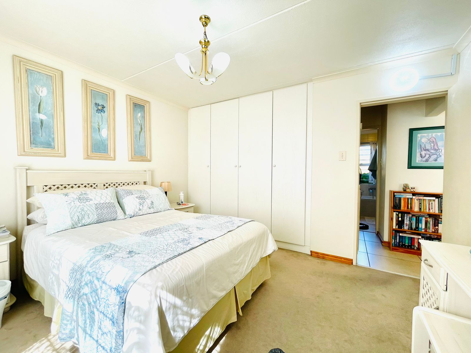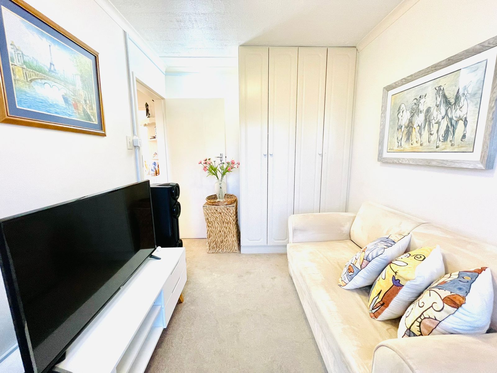 The property boasts 2 bedrooms with built-in cupboards and 1 full bathroom that includes a shower and bath.