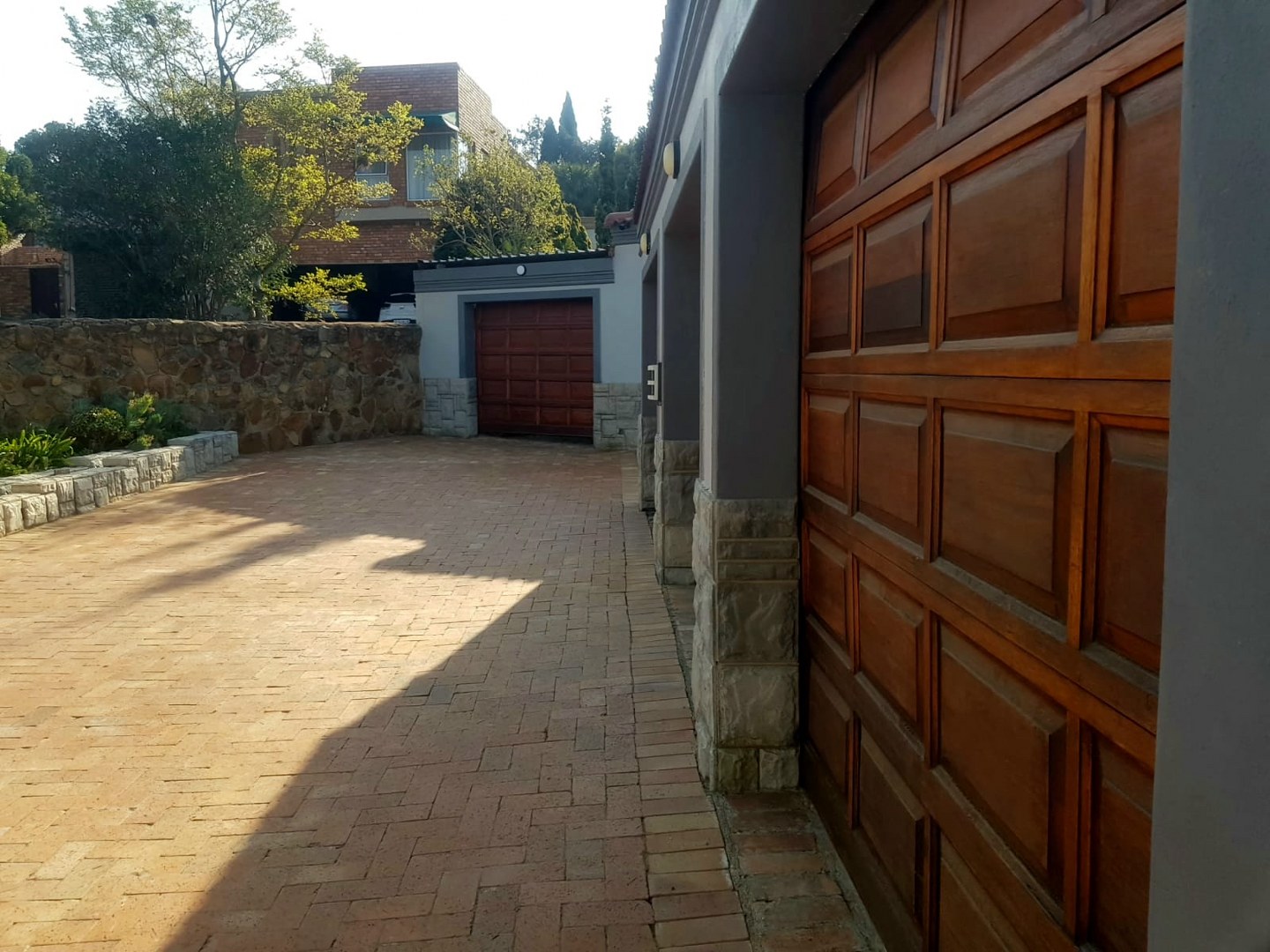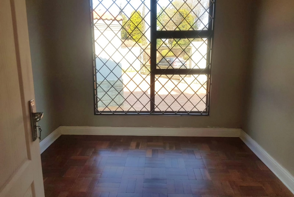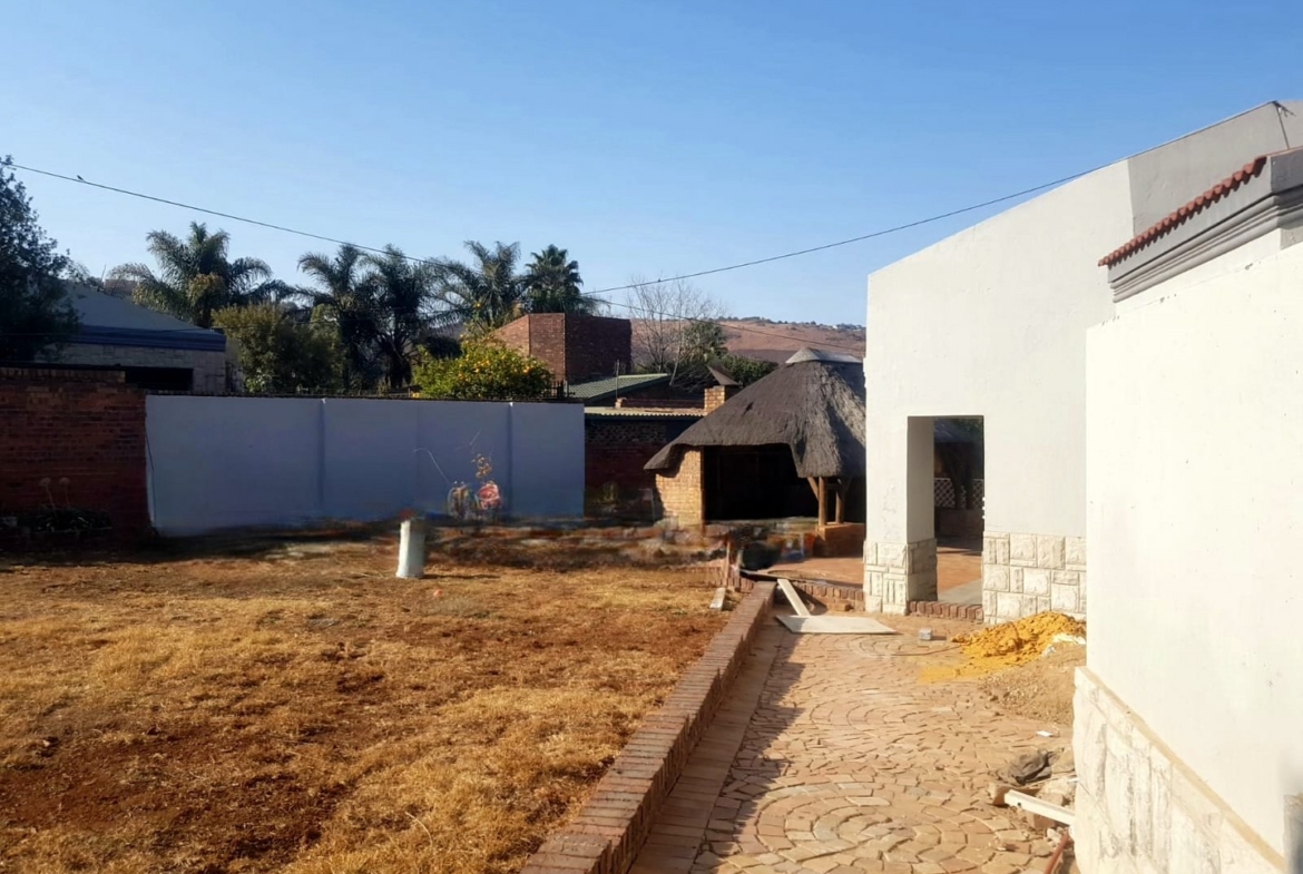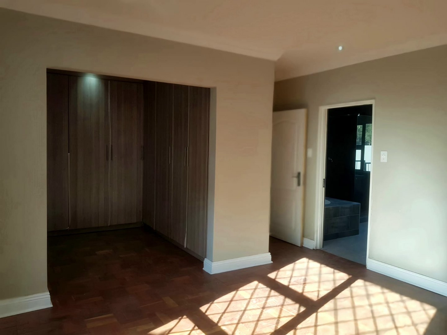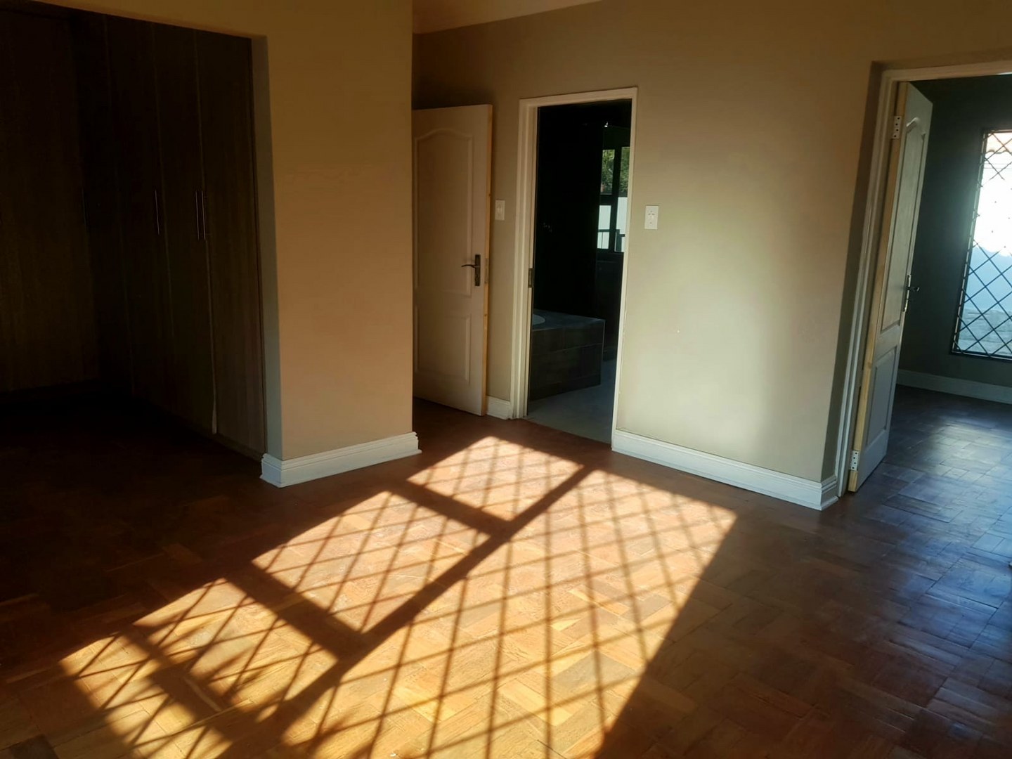 The home boasts solid wooden floors throughout, adding warmth and character. The entertainment area features a lapa and a swimming pool, ideal for outdoor relaxation.
