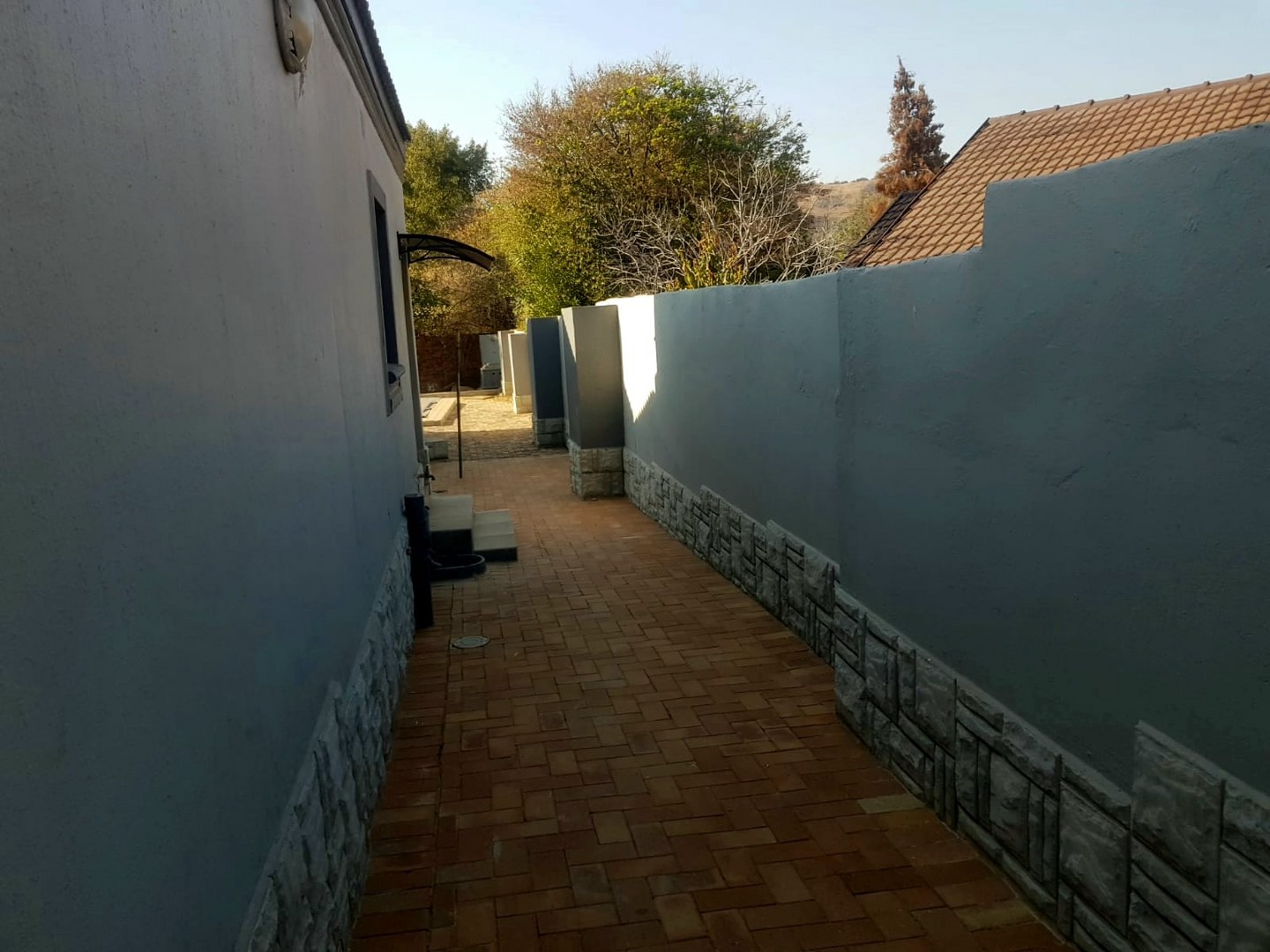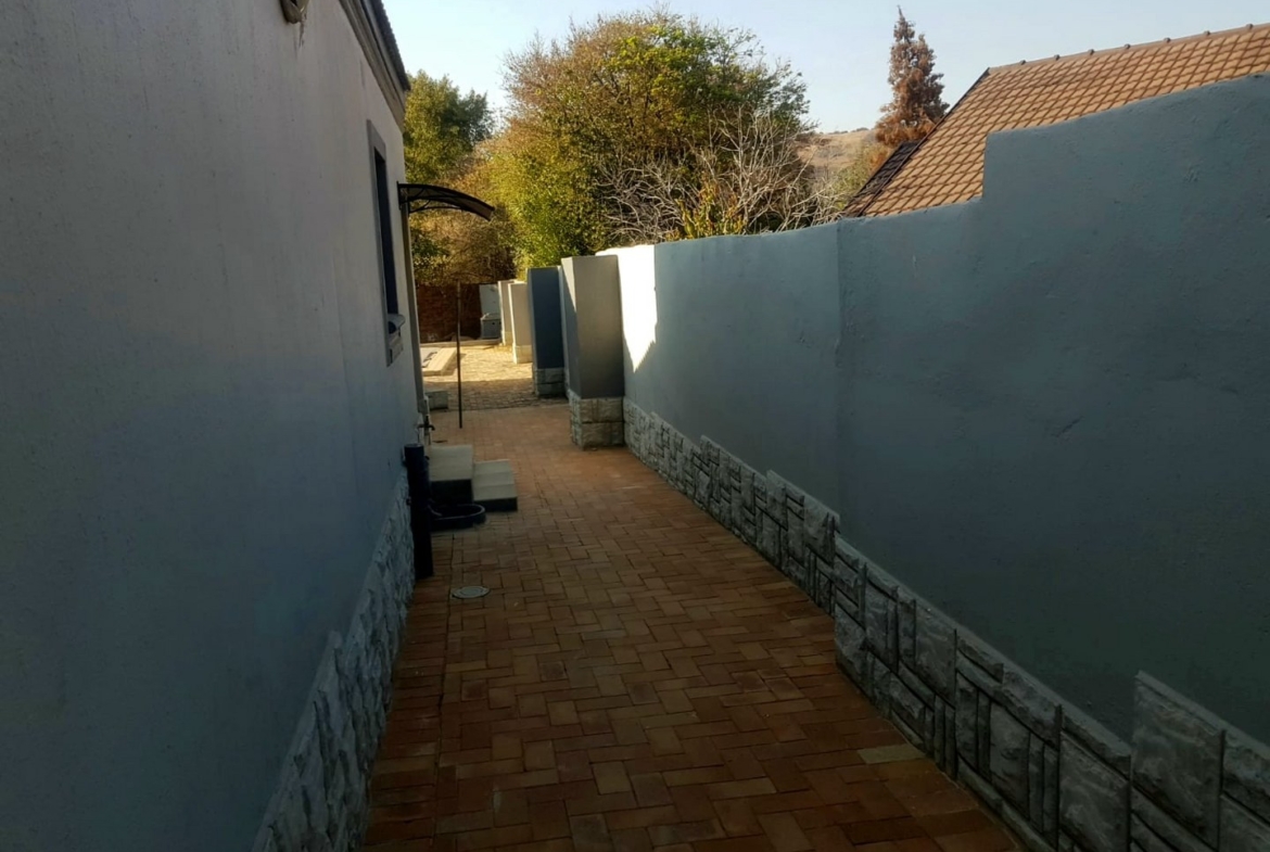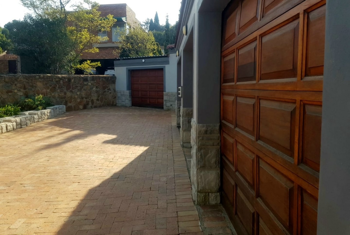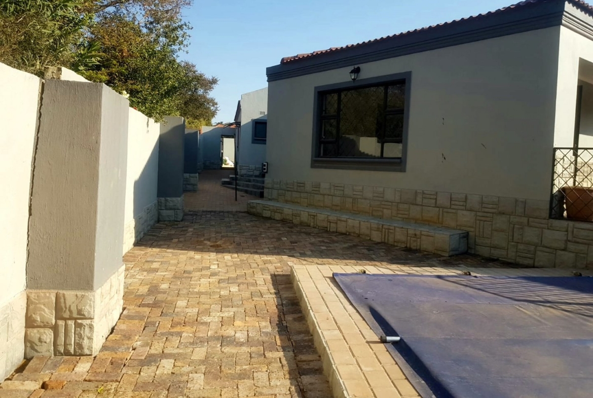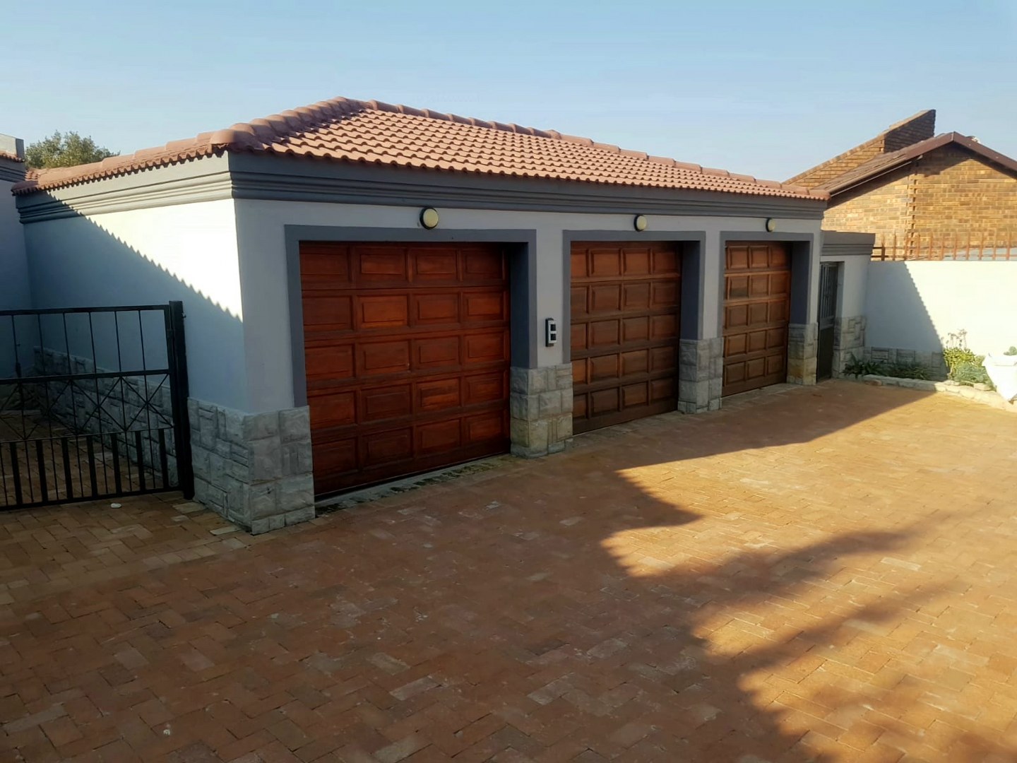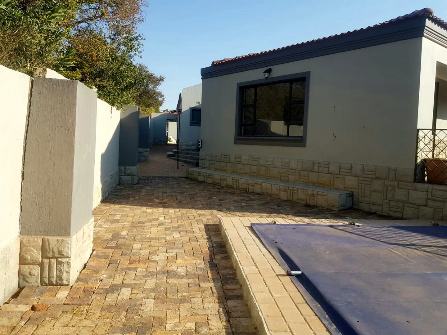 The home boasts solid wooden floors throughout, adding warmth and character. The entertainment area features a lapa and a swimming pool, ideal for outdoor relaxation.