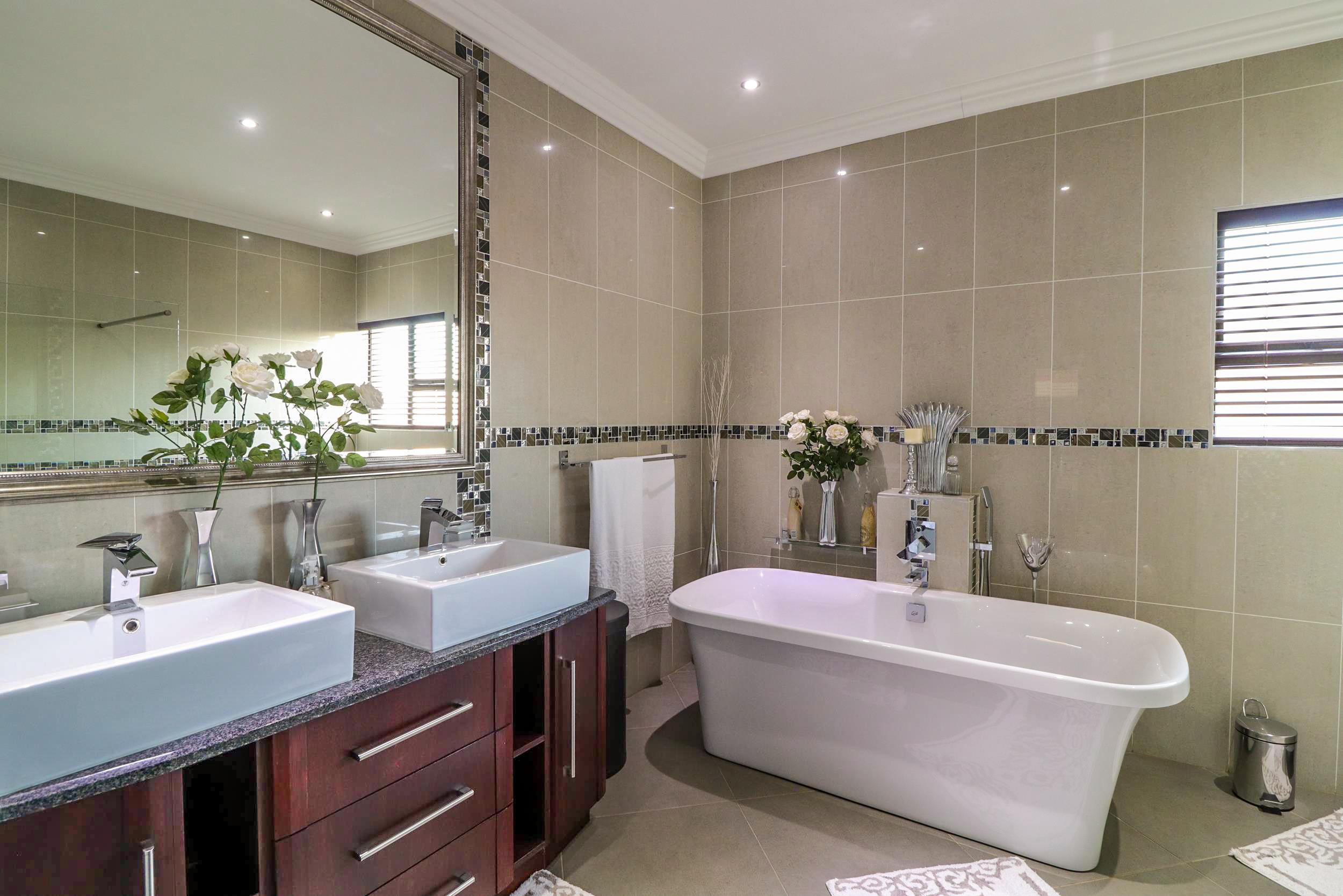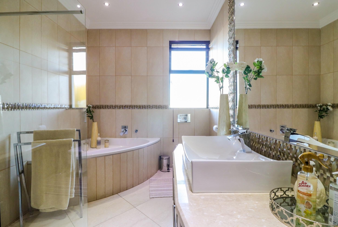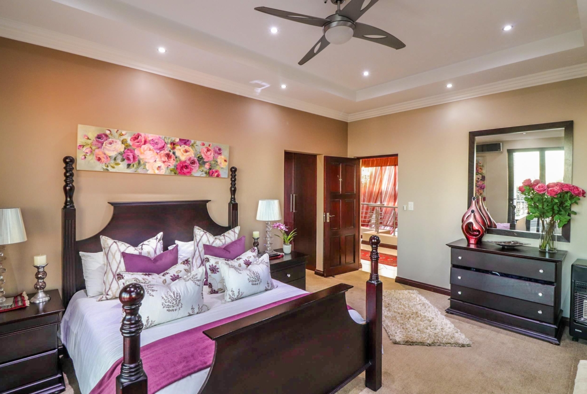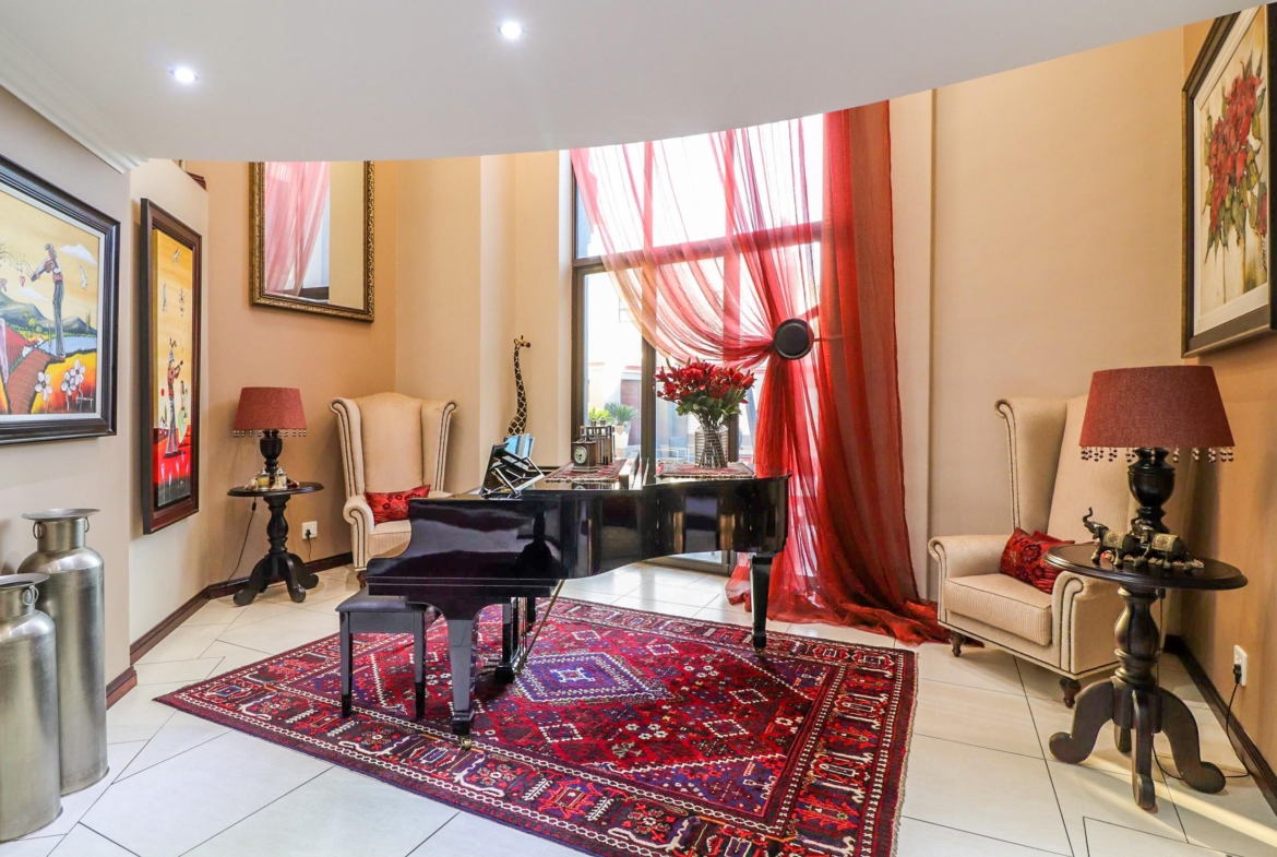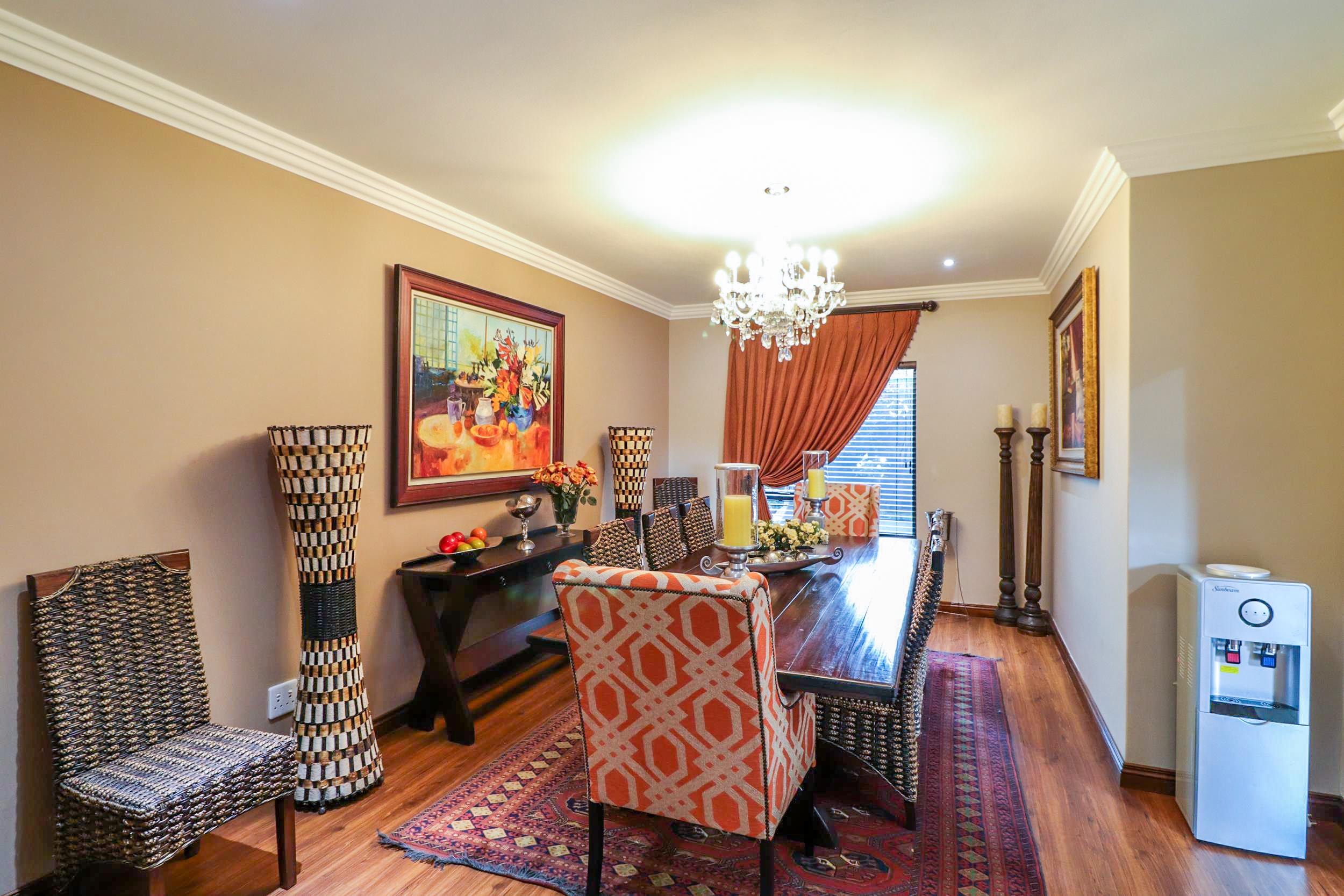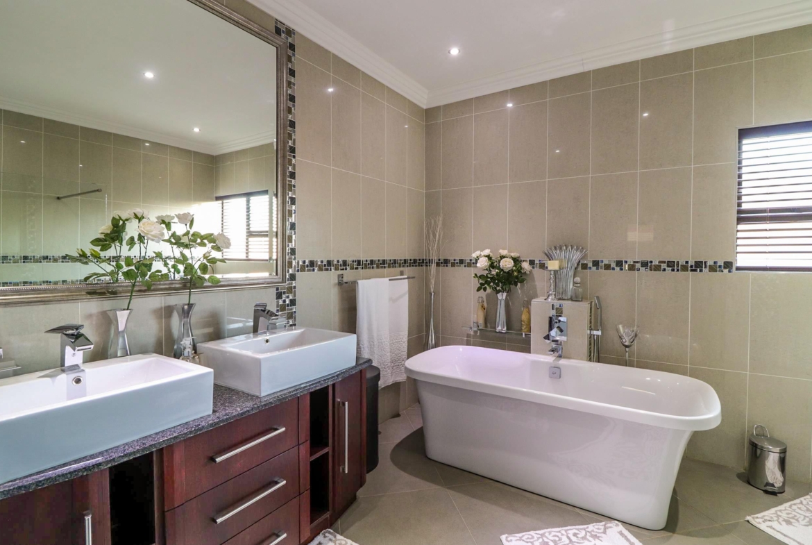 This luxurious home was master built and designed to exacting standards of perfection with attention to detail and faultless workmanship. The inviting entrance sets the tone for the home that offers simplicity and pleasure of luxury combined with comfort. The double front door opens to high volumes. A curved staircase with large windows overlooking the pool and entertainment area. Formal lounge with large cascading windows overlooking the pool area. A 14 seater luxury dining room, the well designed kitchen has granite surfaces, a central island a prep bowl, double ovens, separate scullery and outside laundry. Family lounge offers fitted TV wall unit, gas fireplace, stack doors to the entrainment area, guest bathroom, entertainment room with built in wooden bar built-in braai, guest toilet, snooker room with stack doors to the outside entertainment area. PJ lounge with fitted kitchenette, study, 6 glamorous bedrooms, 6 luxury bathrooms.